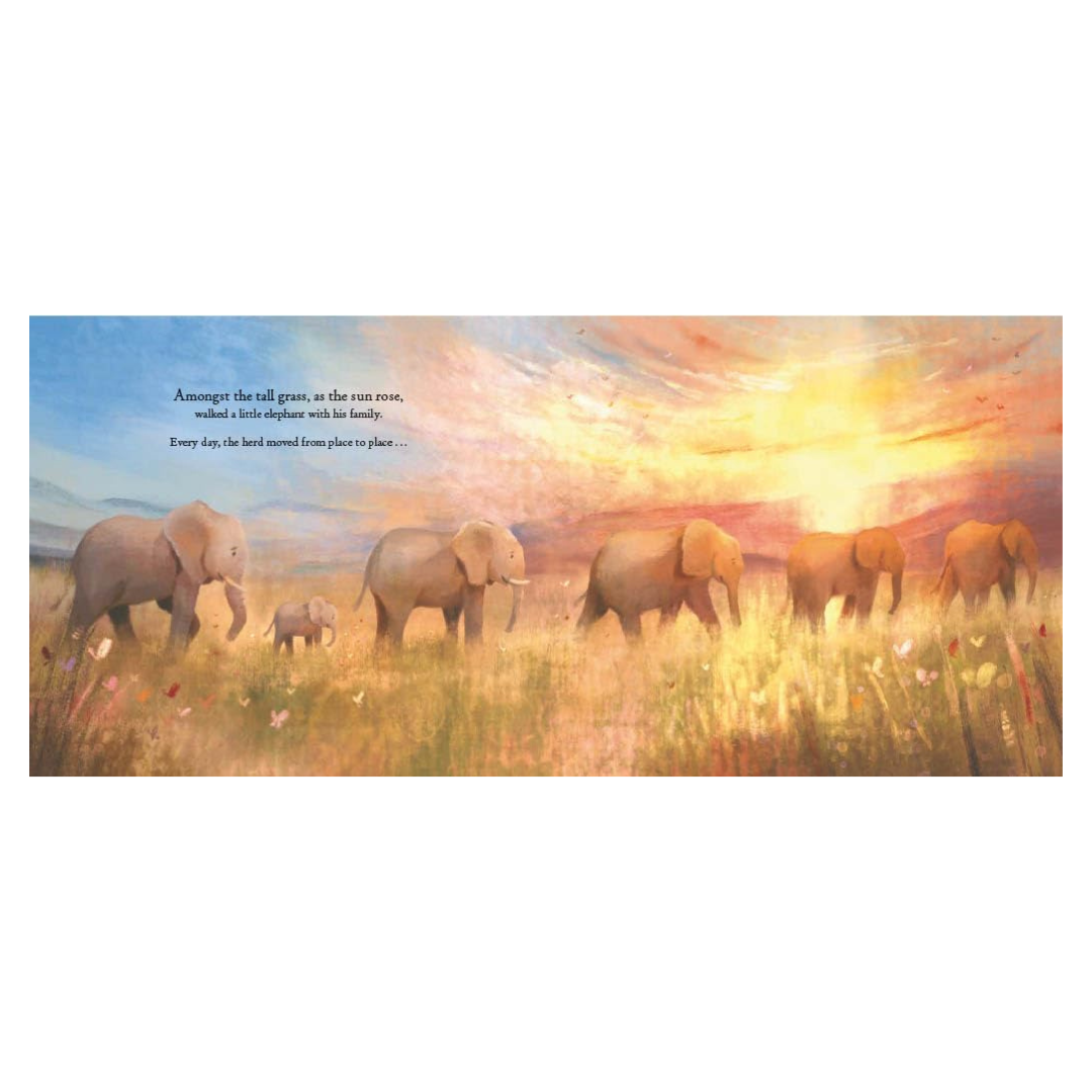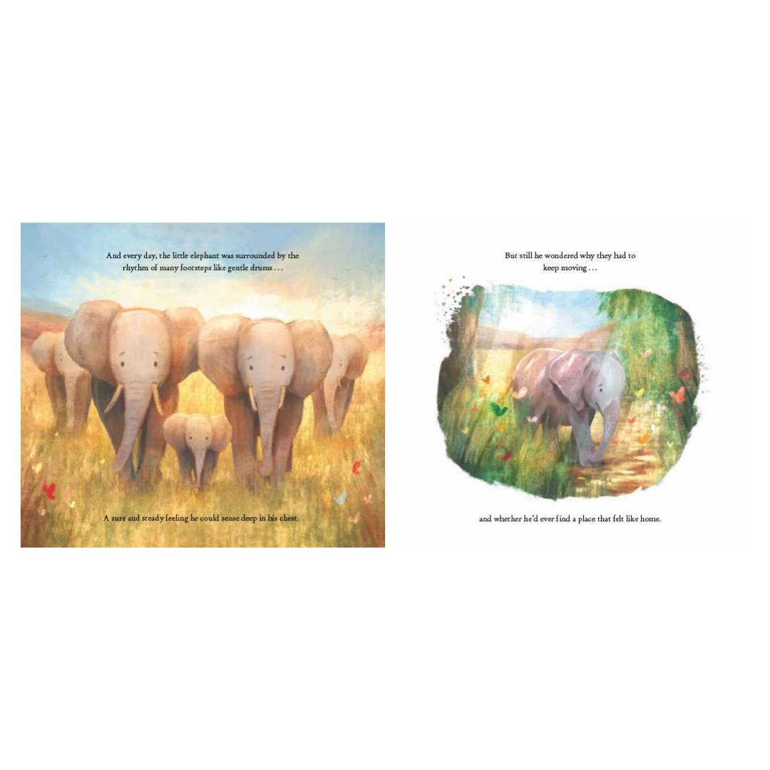 This is a story about a little elephant and his herd. It's a story about moving from place to place each day - and wondering what 'home' means when you move around from forest to grassland to stream.