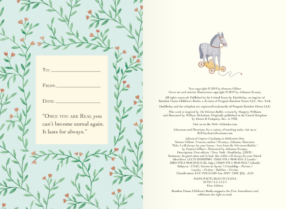 In this adorable and heartwarming celebration of love, the loyal and steadfast Velveteen Rabbit shares all the ways he'll be there for you—in good times and bad. Written in sweet rhyming couplets, this beautifully illustrated gift book is sure to bring a smile to any reader. Ideal for a Valentine's gift, an Easter basket stuffer, a big moment such as the first day of school or graduation, and even a wedding present for bridesmaids or the happy couple, here is a thoughtful way to tell those closest to you that your love will always be Real.