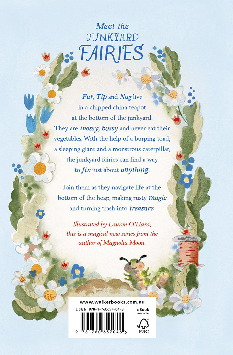 Fur, Tip and Nug live in a chipped, china teapot at the bottom of the junkyard. They are messy, bossy and never eat their vegetables. With the help of a burping toad, a sleeping giant and a monstrous caterpillar, the junkyard fairies can find a way to fix just about anything.