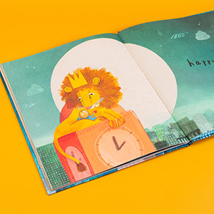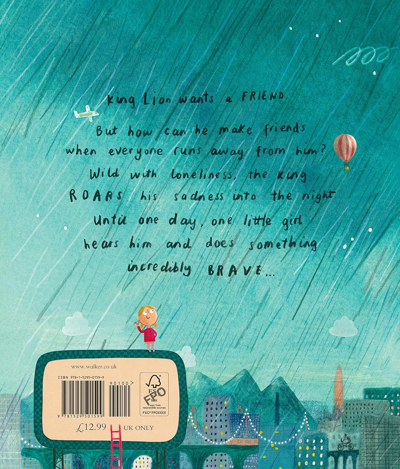 The lion is King and everyone in his kingdom is happy. Everyone, that is, except King Lion himself. The king feels lonely and decides he needs a friend. He tries everything: roaring “hello”, waving his paws, flashing a smile and even cracking a joke. But everyone just runs away. Then, feeling lonelier than ever, the king climbs up the tallest tower in his kingdom and roars and roars and ROARS! Now no one in the kingdom is happy. Until a little girl sees the king and comes up with a very brave plan to help him. A joyful, touching and vibrantly illustrated story.