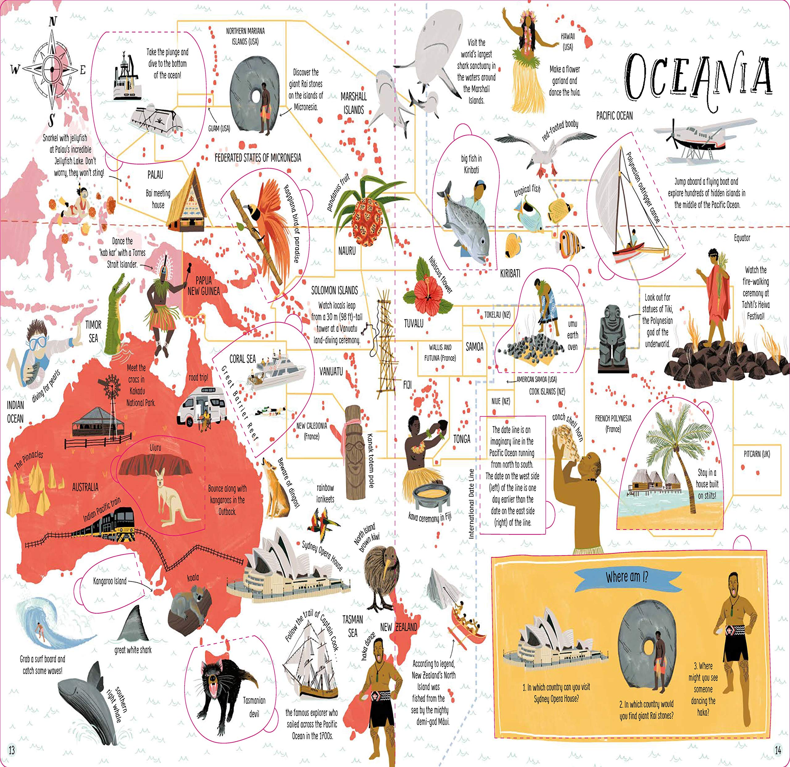 This interactive and colourful atlas takes young readers on a hands-on journey all around the world. Each page turned brings a new continent to life with a total of more than 100 flaps to lift, beautifully detailed illustrations, and fun facts about different cultures, species of wildlife and places to visit along the way.