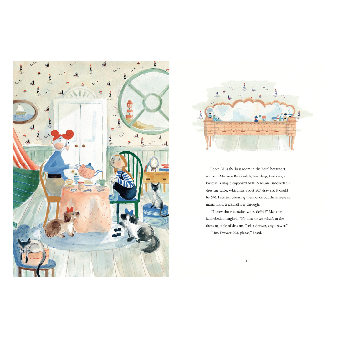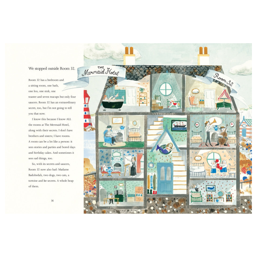 Mabel lives with her parents in The Mermaid Hotel, by the sea. Mabel likes to keep an eye on the comings and goings of all the guests. Then one day a particularly in-ter-est-ing old lady comes to stay. There is something very suspicious about her, with her growly voice and her heavy trunks and her beady-eyed tortoise. And why does no one know her REAL name? There can only be one answer, Mabel decides ... this guest is a SUPERVILLAIN. But even supervillains have a soft side, and as an unlikely friendship grows between the pair, their fantastical exploits take them well beyond the corridors of their seaside home.