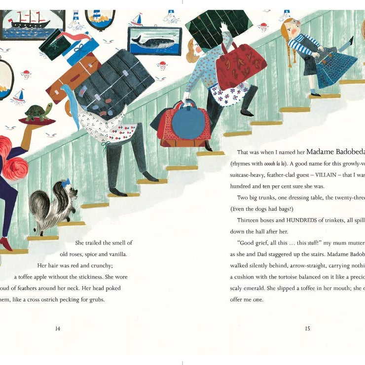 Mabel lives with her parents in The Mermaid Hotel, by the sea. Mabel likes to keep an eye on the comings and goings of all the guests, particularly their most interesting guest and Mabel's best friend, Madame Badobedah. Madame Badobedah has pirouetted through pyramids, skated across rivers, swum with mermaids and even helped a Triceratops with a toothache.