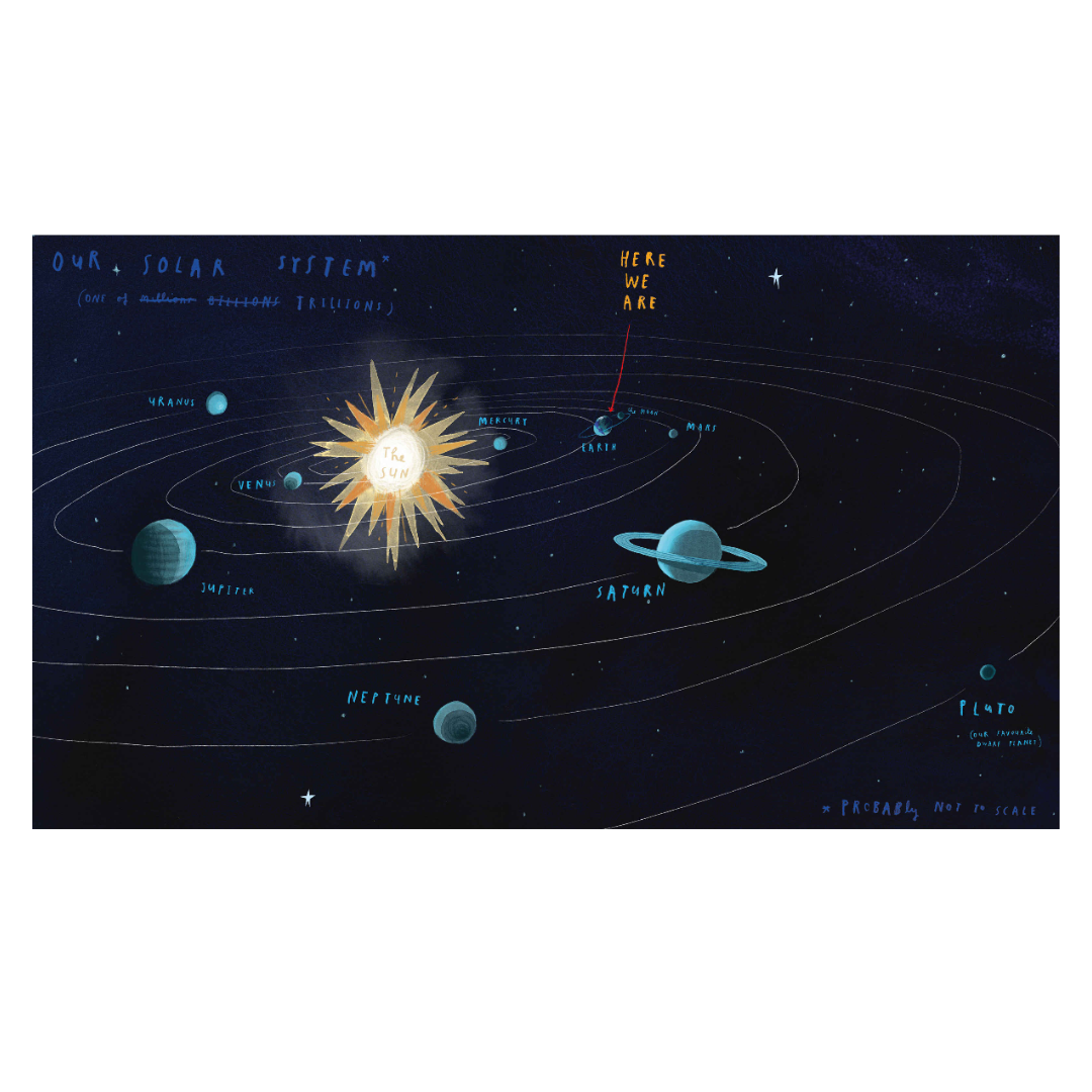 A father takes his two children on a thrilling out-of-this-world adventure into space and invites them to look back at Earth and the conflicts that have taken place since the beginning of time. This becomes a brief history of the world and a whistle-stop guide to the universe, all rolled into one – and told with Oliver Jeffers's inimitable perspective, wit and exquisite artwork.