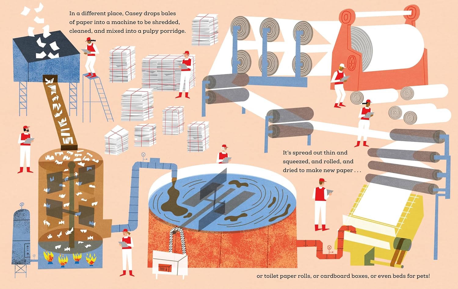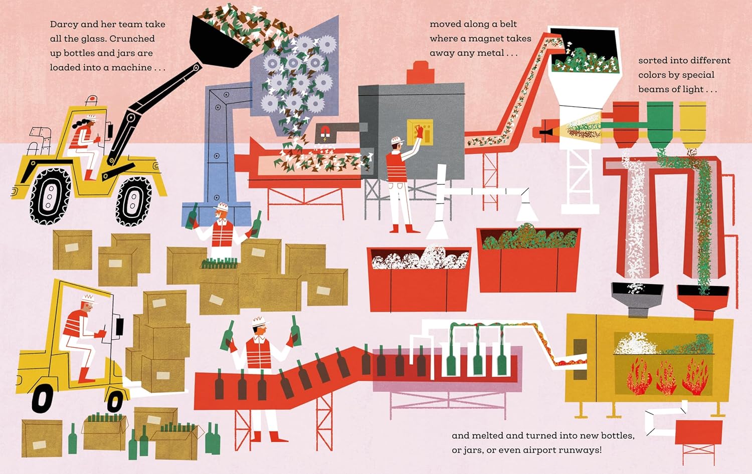 With stylish, contemporary artwork from Klas Fahlen and gentle narrative text by Polly Faber, this gorgeous picture book introduces all the people, processes and vehicles involved in recycling paper, glass, plastic, food and more.