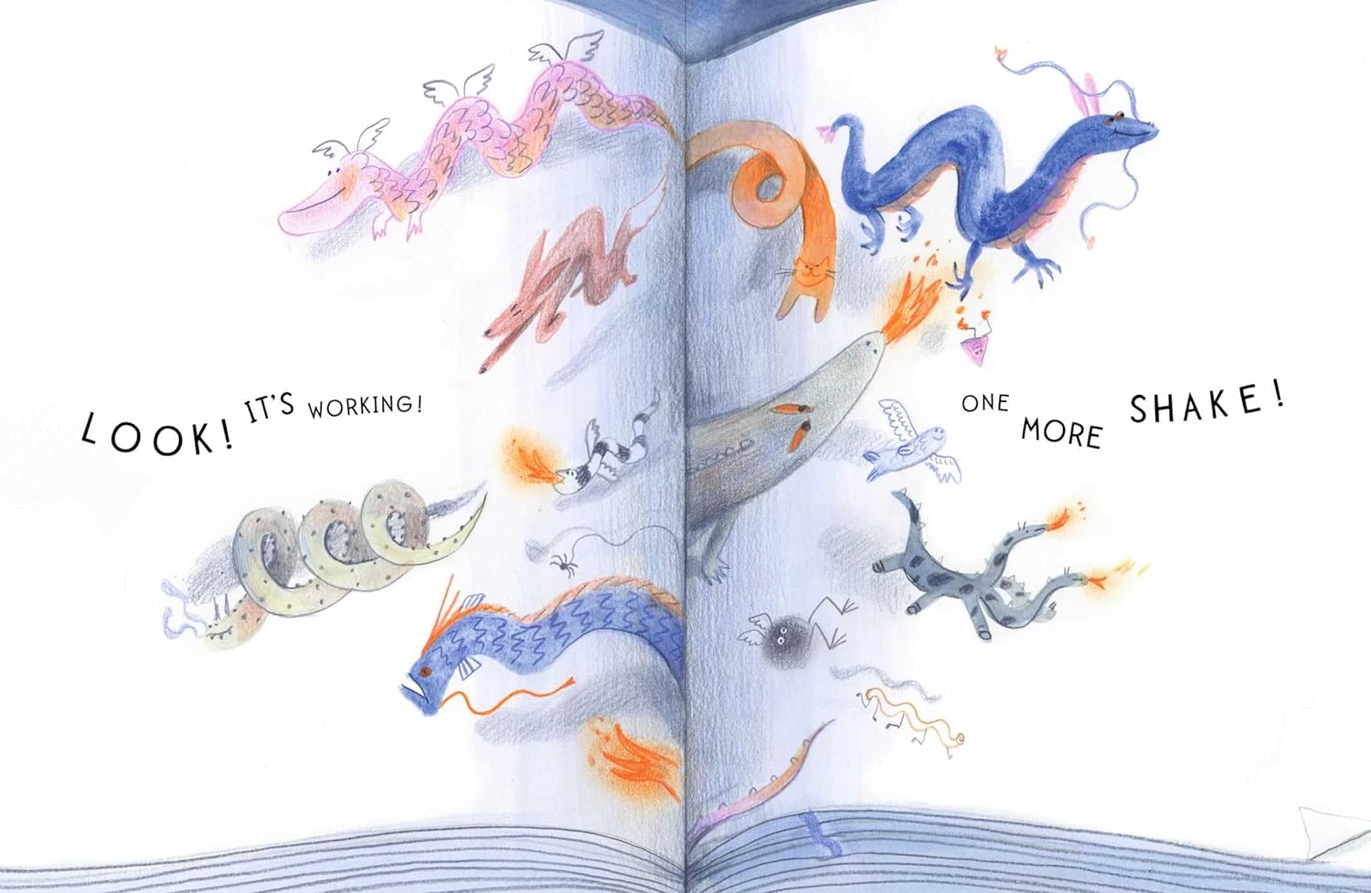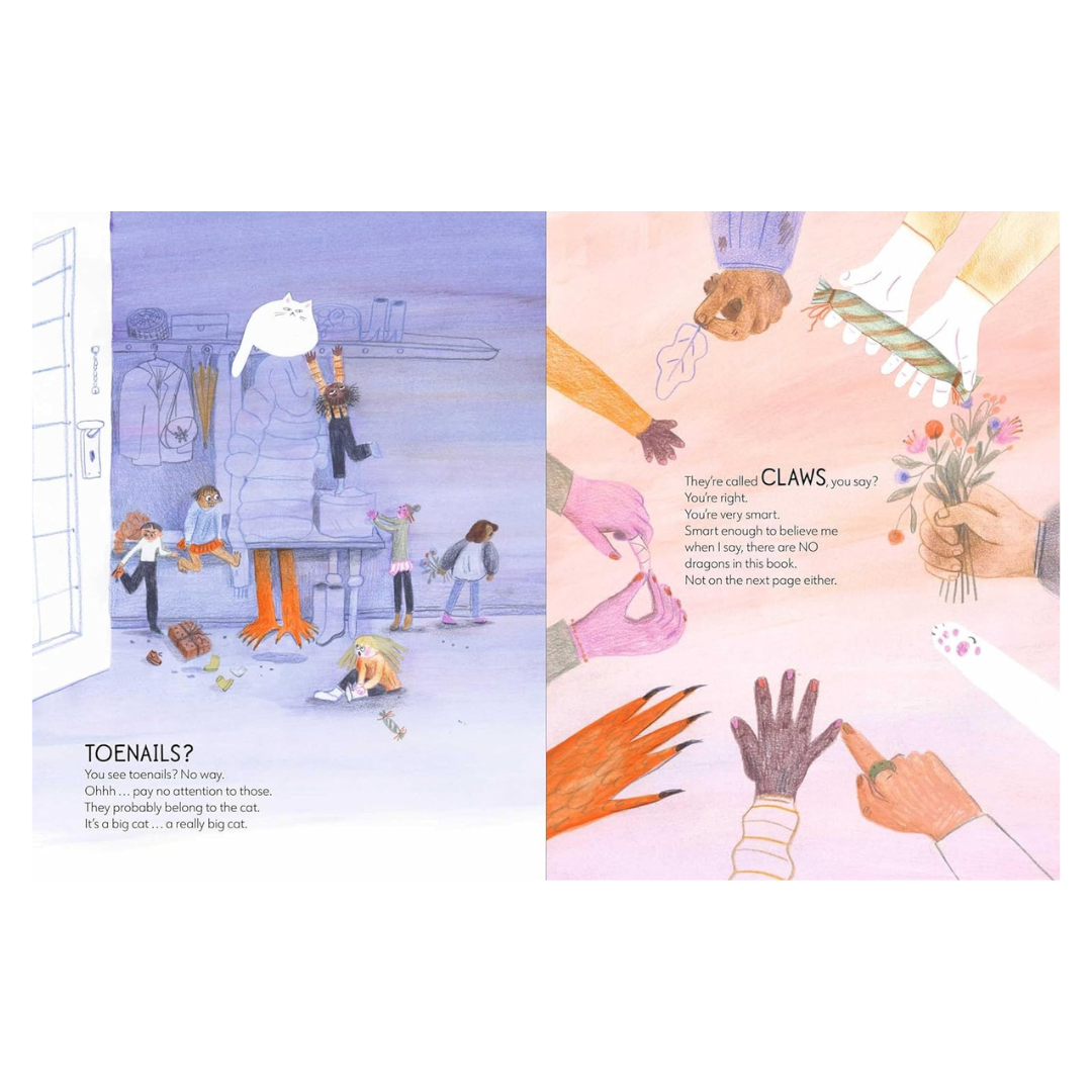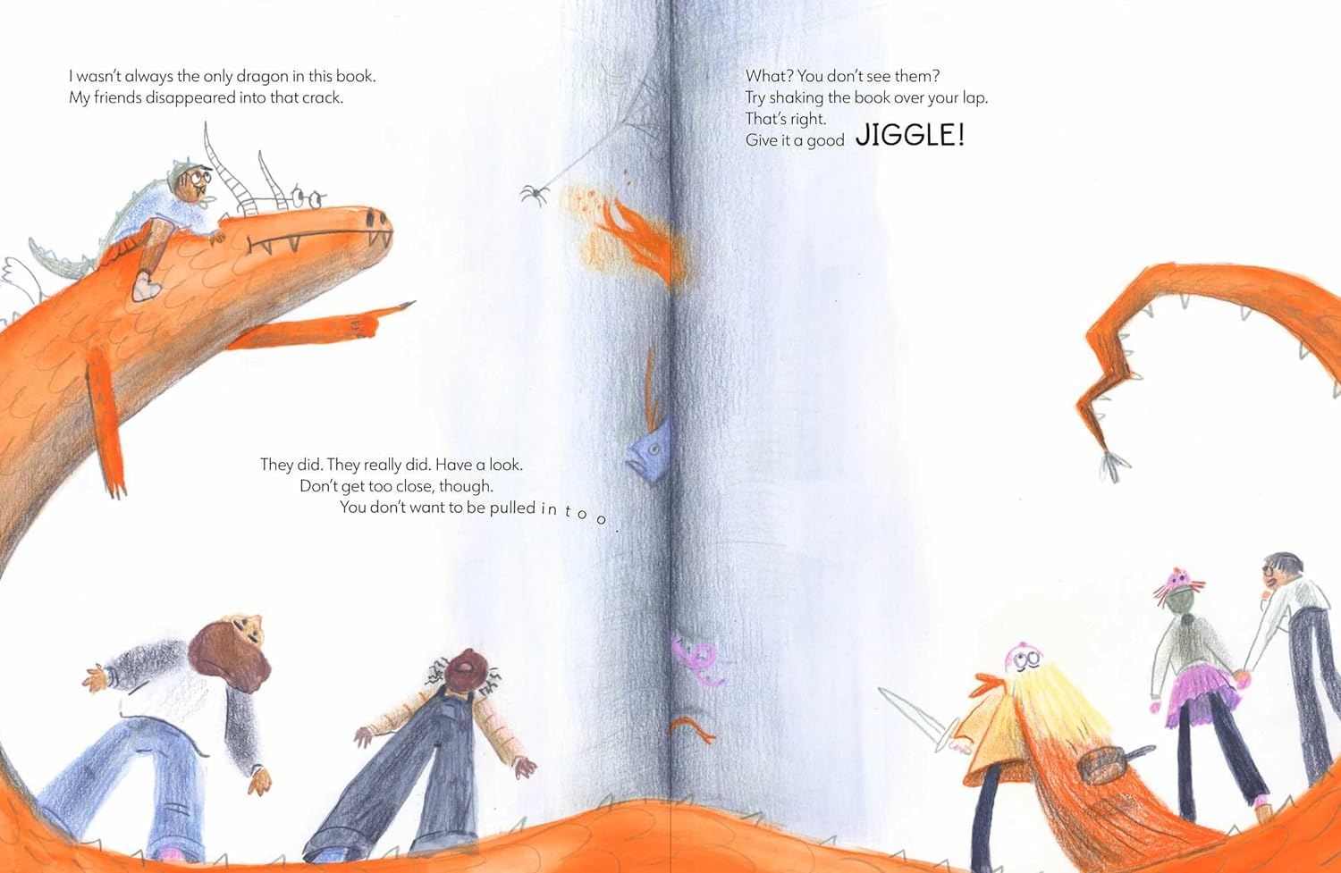 There are no dragons in this book! Wait, is that really true? There was one right here, wasn’t there? Was he hiding in the attic? What do you mean, he’s not alone? Come on, let’s give the book a good shake and see what happens!