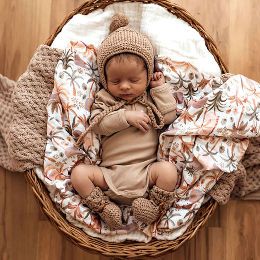 Baby Bonnet + Booties Set - Fawn Merino Wool
