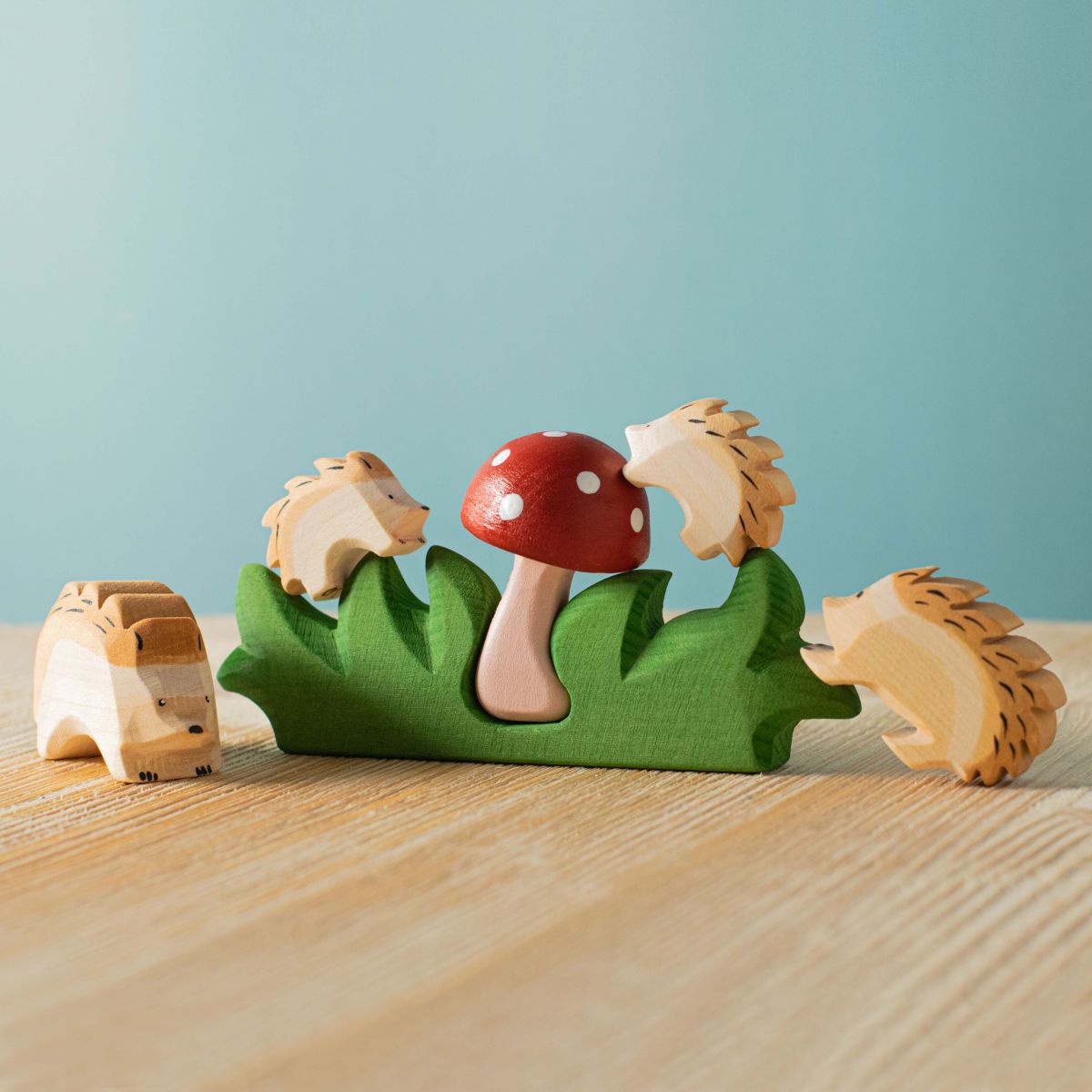 Bumbu Wooden Animal Woodland | Hedgehogs and Mushroom SET