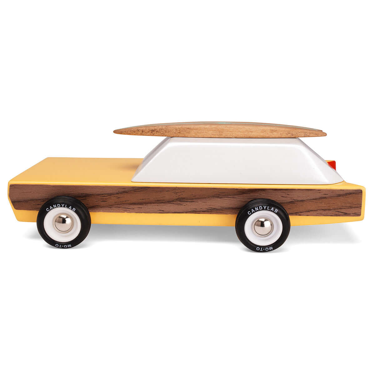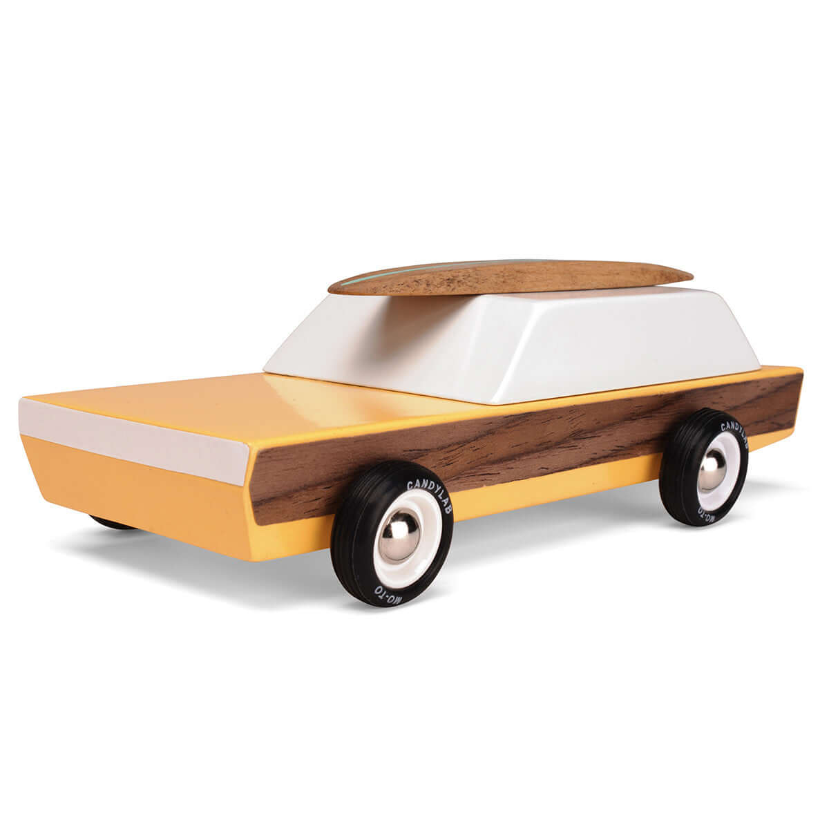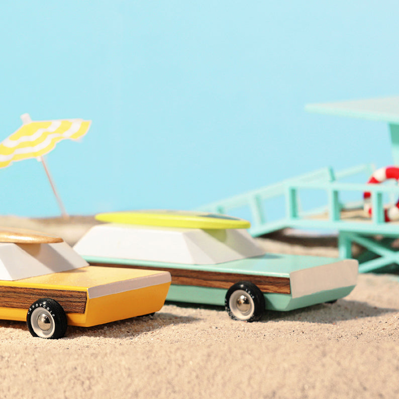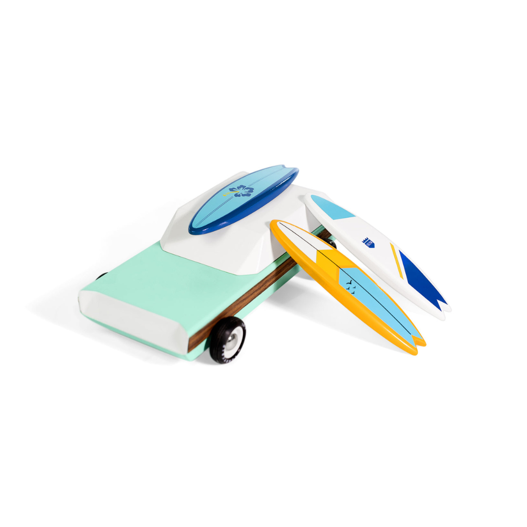 Set of 3 Candylab solid beach wood surf boards with an embedded magnet for use with your Candylab cars. Stick them on your Woodie, stick them on your Longhorn, stick em on your fridge.
