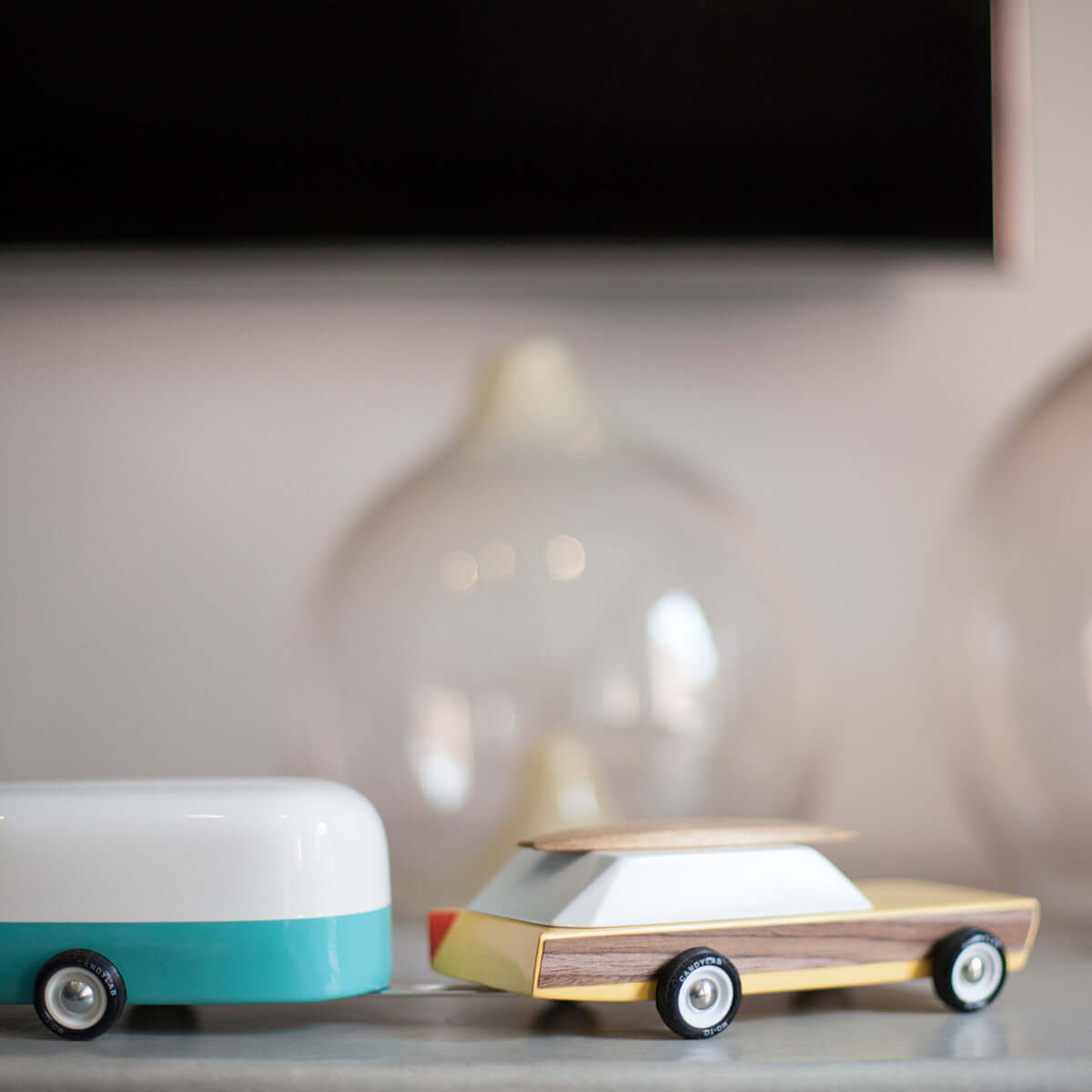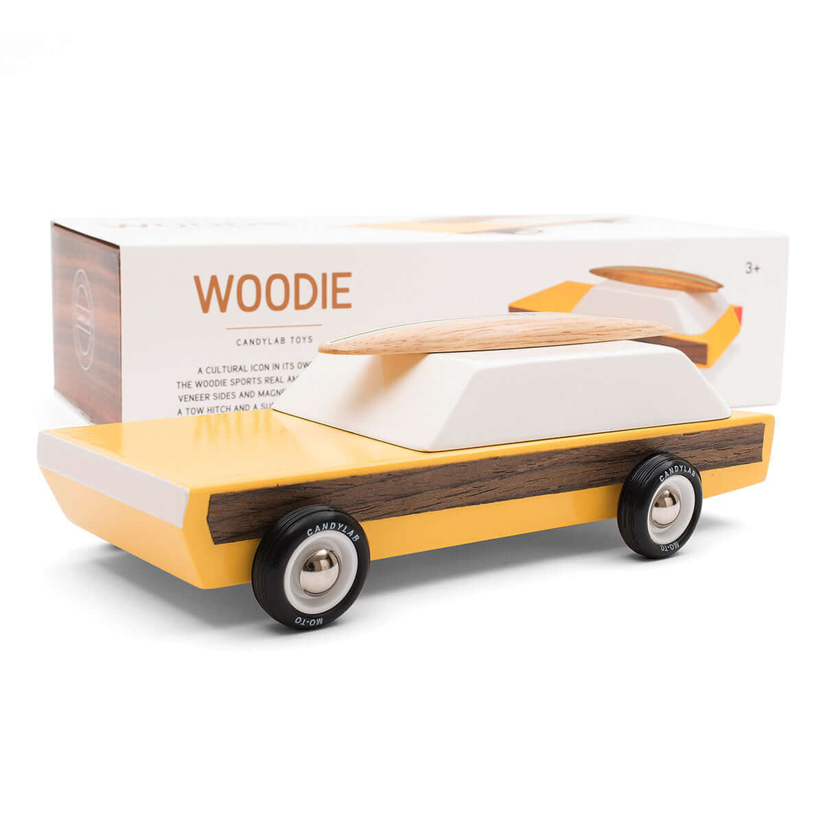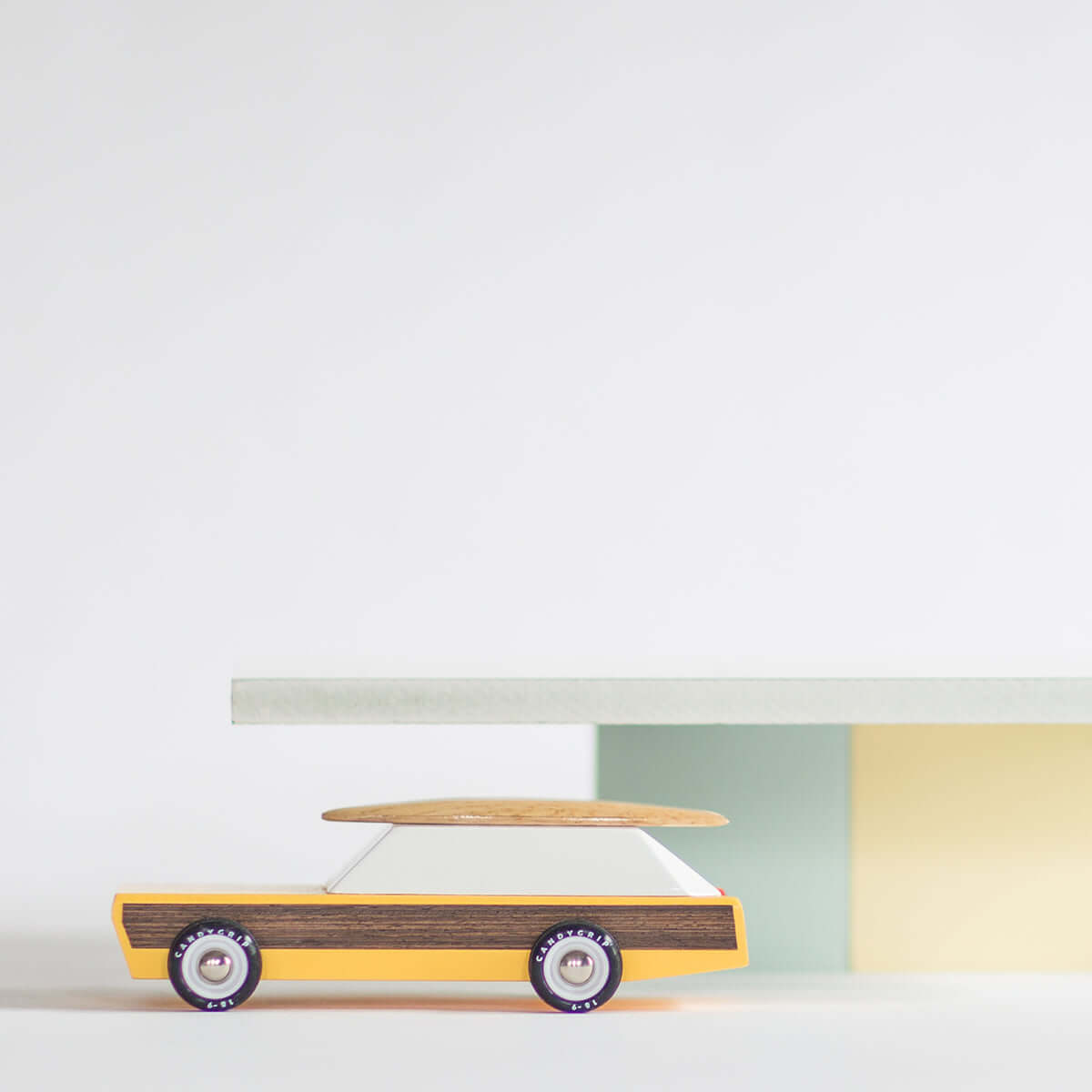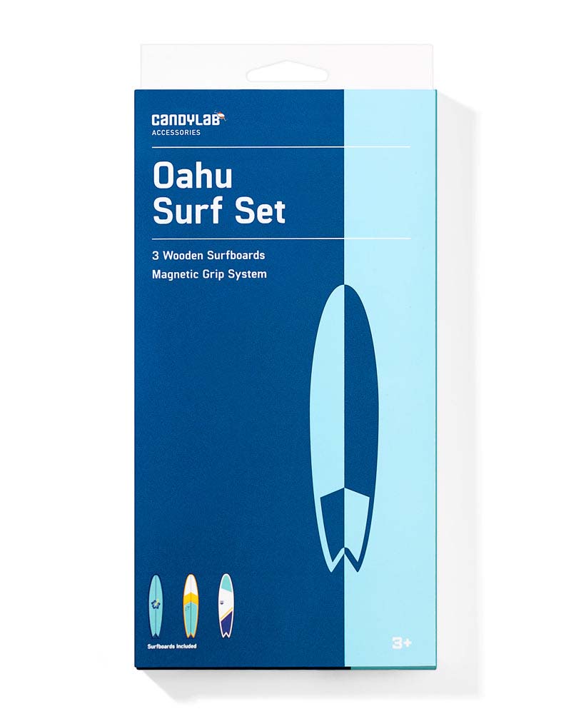 Set of 3 Candylab solid beach wood surf boards with an embedded magnet for use with your Candylab cars. Stick them on your Woodie, stick them on your Longhorn, stick em on your fridge.