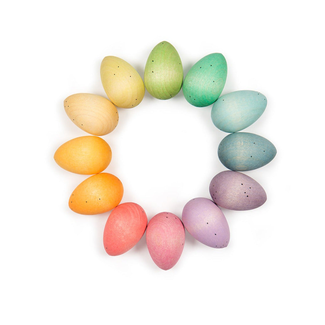 12 eggs that come in 12 colours of the rainbow to celebrate spring, decorate for Easter, cook them in the play kitchen or transport them on a lorry.