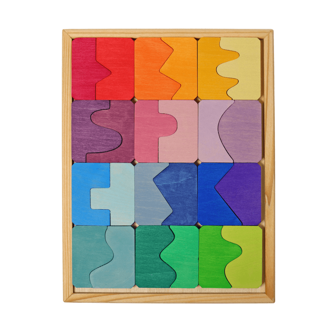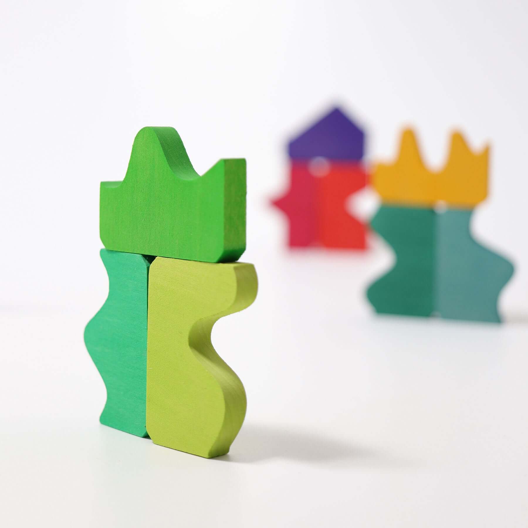 Tricky building game in which the matching two parts are to be found. As a tactile variation, put the pieces in a bag and find the matching parts through the sense of touch.The individual parts have interesting and unusual shapes so they are also ideal for outdoor play and imaginative building.