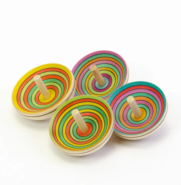 Mader Kreiselmanufaktur was founded in 1991 by Klaus Mader, a very skilled carpenter with a love for handcrafted wooden toys. He has a small but mighty workshop found in the foothills of the Austrian Alps which hand makes not only traditional spinning tops but also skipping ropes, kaleidoscopes and yo-yos. Each spinning top is painstakingly made by hand, often by Klaus himself, out of locally sourced wood with some tops requiring up to 20 different stages such as wood turning, burning, embossing, carving, brushing, painting and varnishing. One can’t help but admire the attention to detail in every creation.