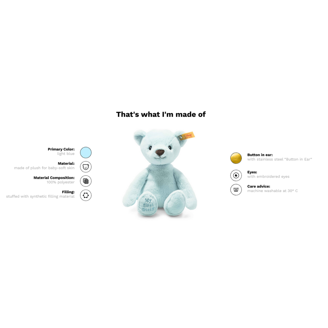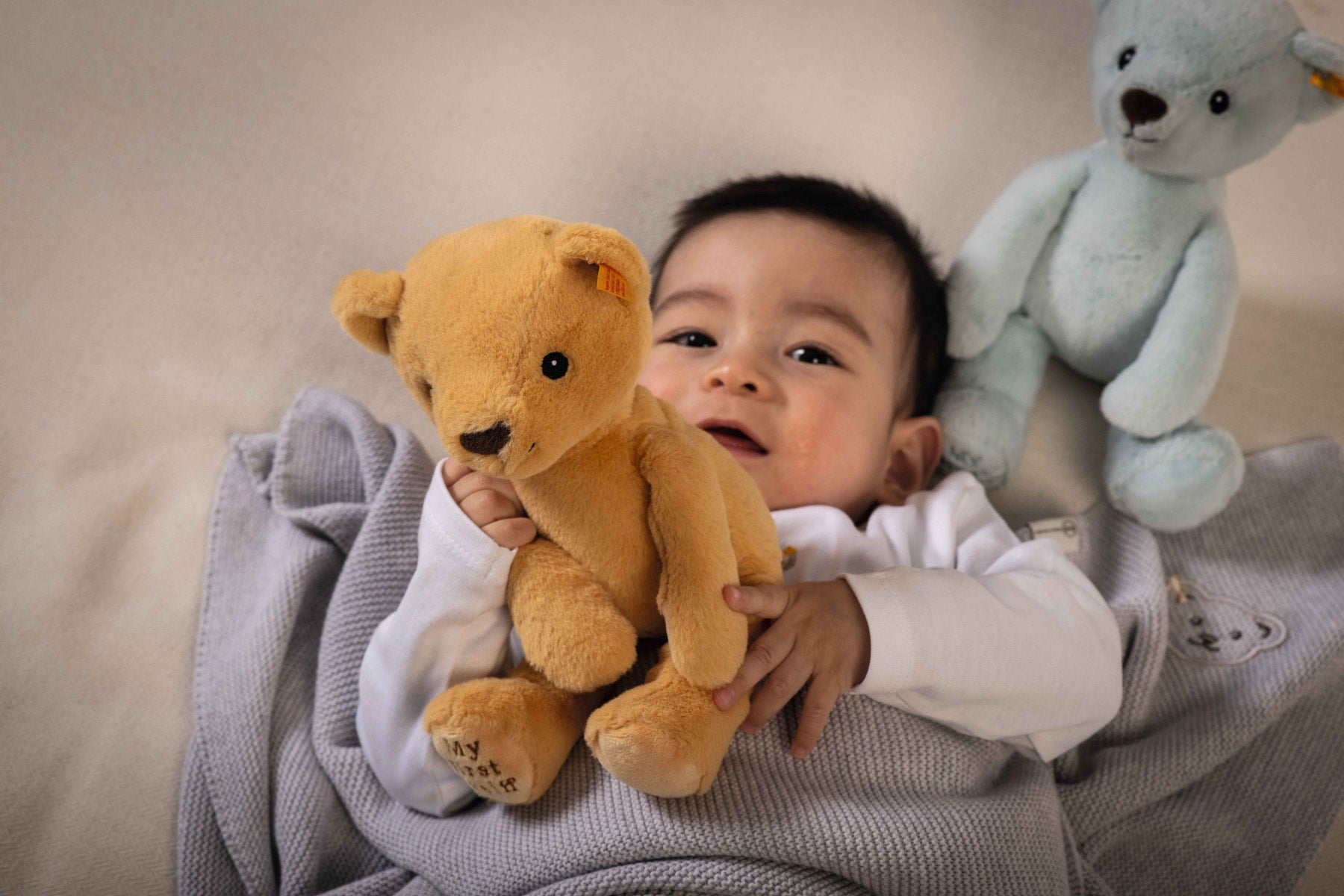 My first Steiff Teddy bear is a wonderful gift for a newborn and a soft, cuddly companion for little boys and girls as they start to explore.