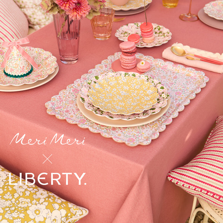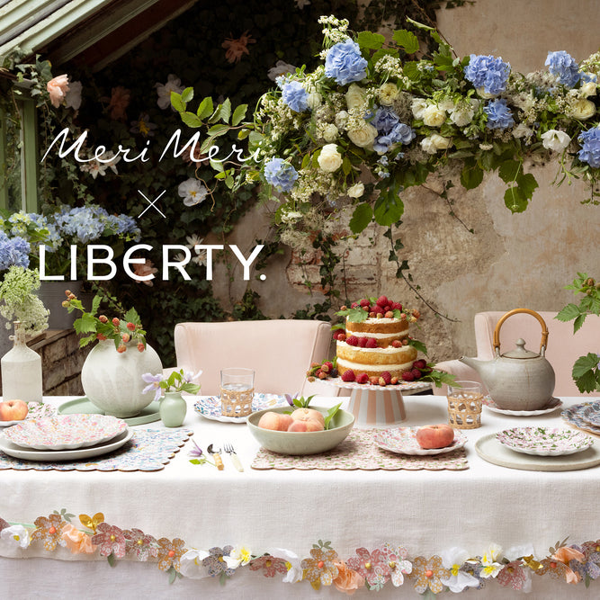 Our collaboration with the iconic British brand Liberty, known for its artistic prints and design heritage, includes beautifully crafted reusable tableware, stylish decor and exquisite gifts in a variety of distinctive Liberty prints. Blending Liberty’s renowned artistic prints with Meri Meri’s joyful style, this collection will appeal to all ages.