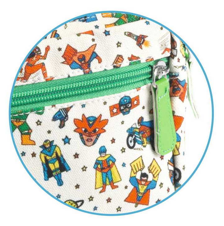 A super practical heroes-themed illustrated bumbag with 1 large centre pocket and 1 small front pocket.