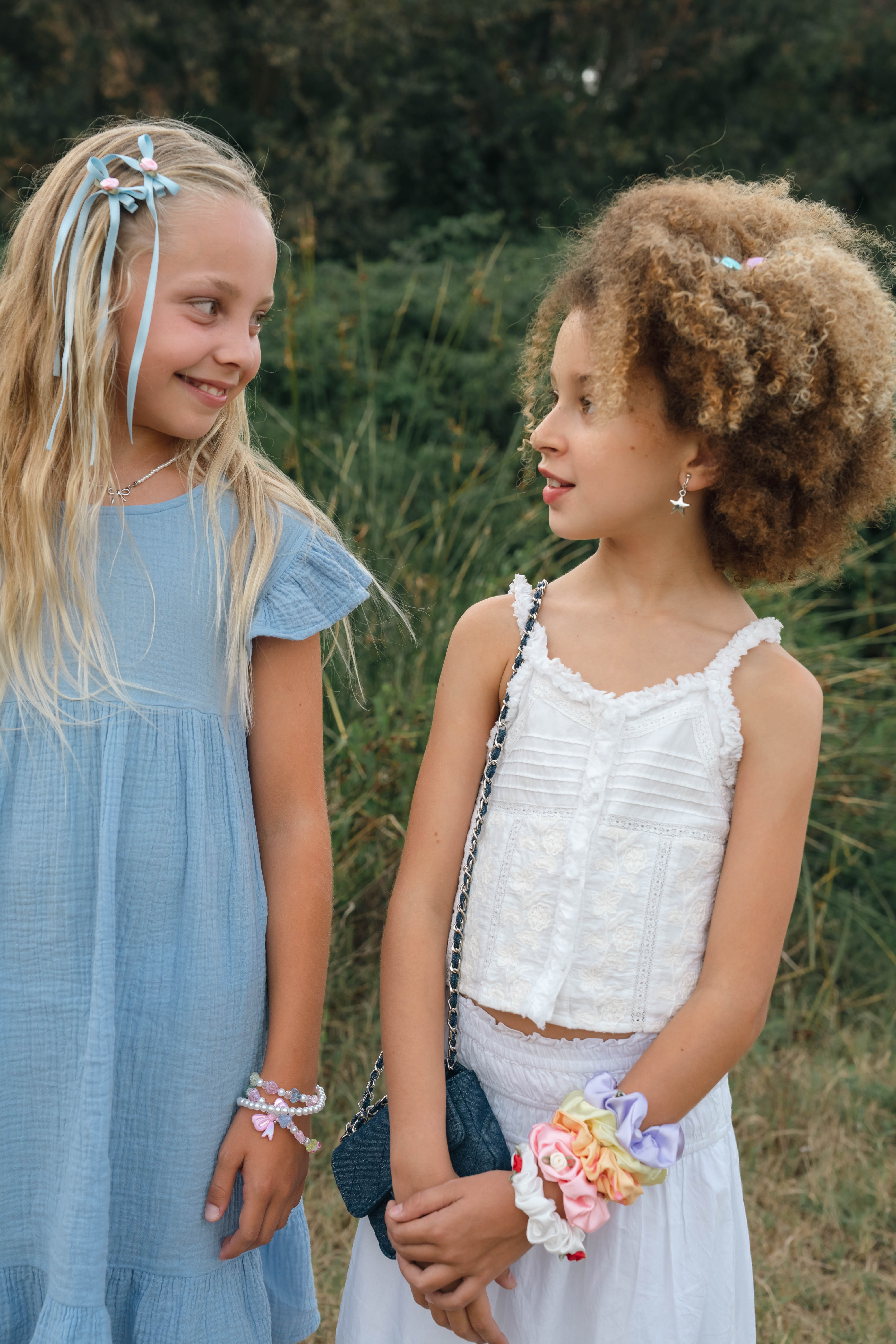 Add a touch of sweetness to your little one’s outfit with this dainty cream beaded bracelet, featuring a charming bow detail. Perfectly sized for kids, it’s a playful accessory that brings a soft, whimsical vibe to any look.