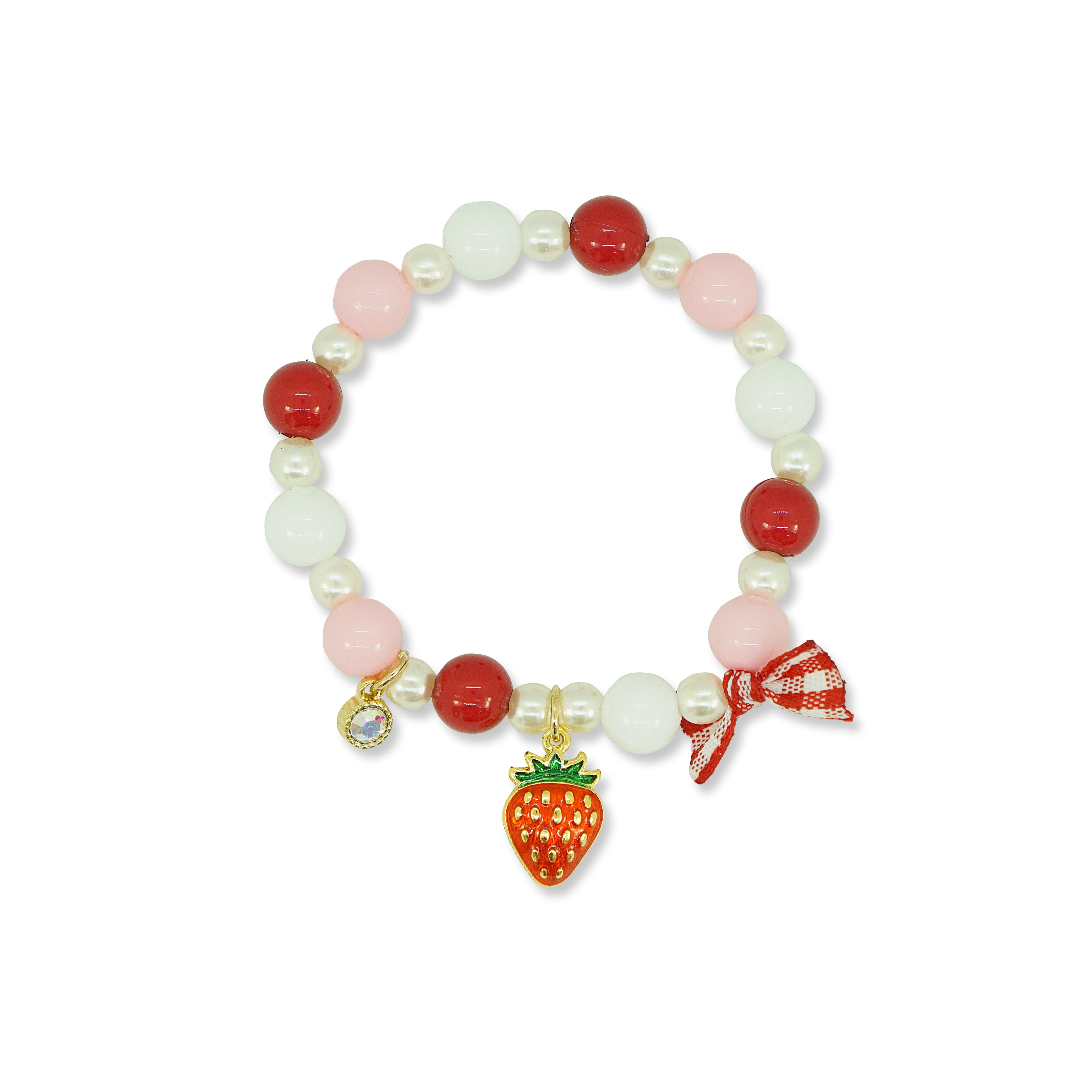 A sweet treat for your little one's wrist. Crafted with vibrant red and pink hues, it'll bring a cheery pop of color to their look. And with its strawberry-shaped charm, it's sure to make 'em say "Howdy-do!"