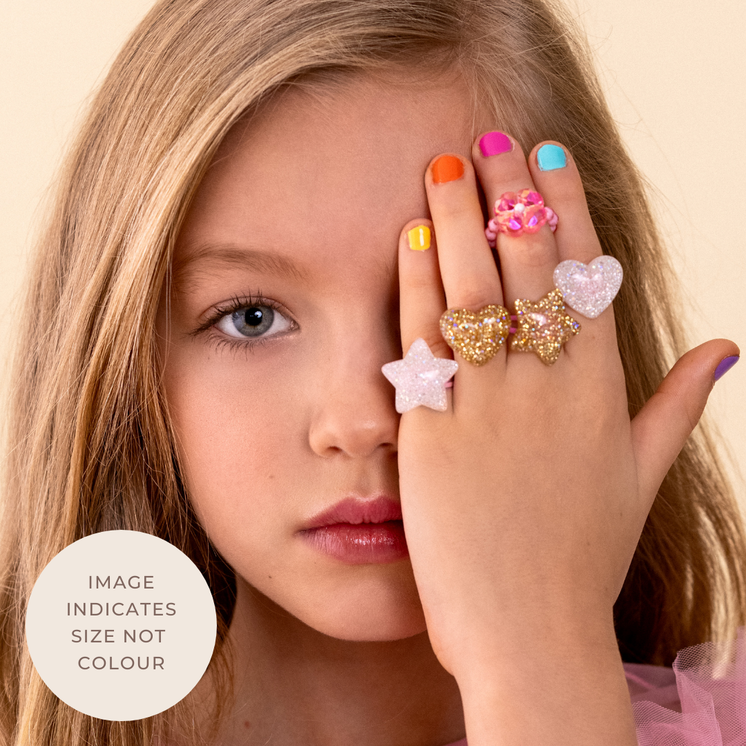 Flaunt your unique style with this adjustable, extra-large, sparkle-heart ring—a magical addition to any look!
