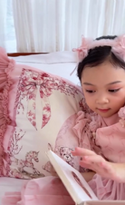 -A beautiful artwork of floral toile on dreamy vintage toys framed with flowers and bows and pink borders