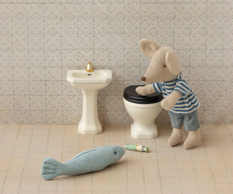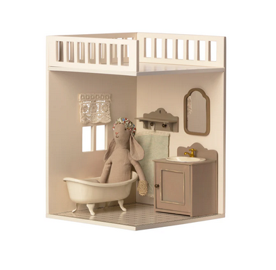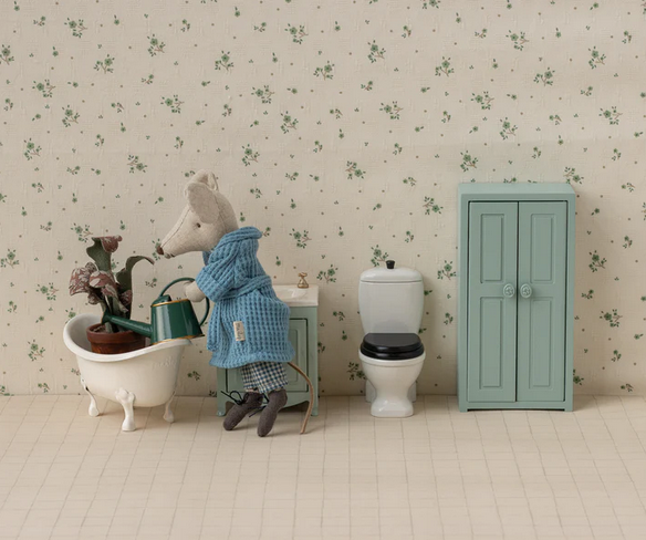 A very essential item for the the bathroom in Mouse hole Farmhouse. It has a small closet under the sink and of course a mirror as well. Add the Maileg toilet and bathtub to extend the play.