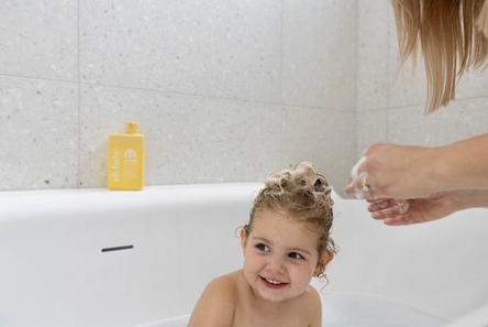 Wet your child’s hair and body with warm water, apply the product with your hand or a washcloth, gently lather over hair and body, rinse well.