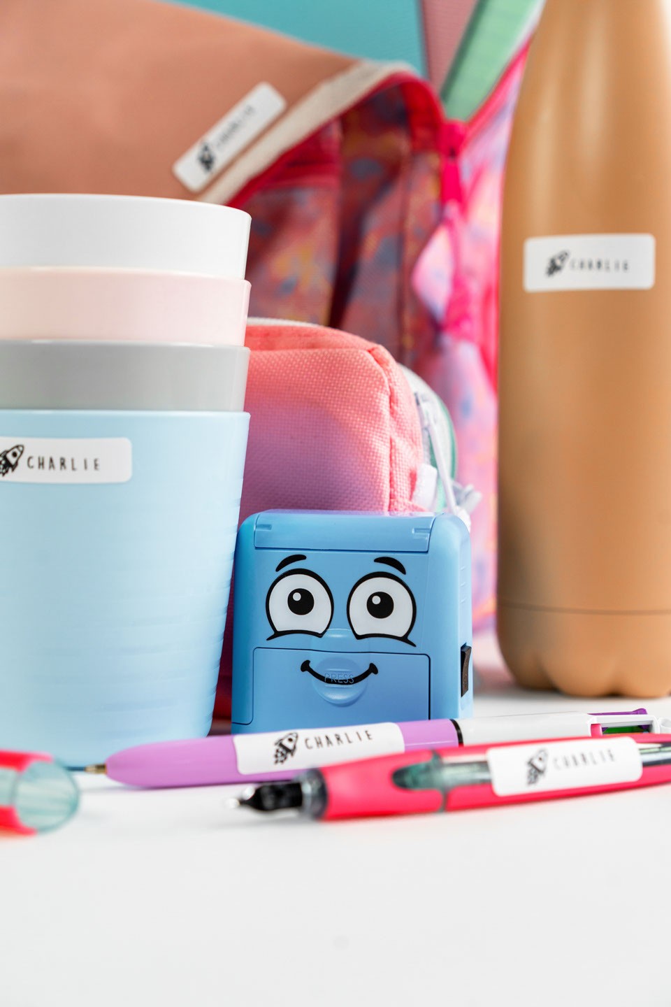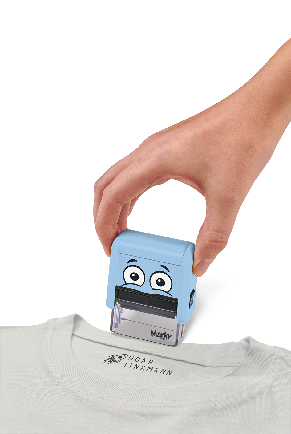 The DIY Marky set is a complete labelling system, combining smart design with high-quality European manufacturing. Each set includes a personalised stamp with a built-in black textile ink pad, capable of approximately 1,000 impressions on textiles and other absorbent surfaces. In addition, the kit includes iron-on tape for dark fabrics and dishwasher-safe labels for non-absorbent surfaces such as drink bottles and lunch boxes, allowing parents to label virtually anything their child takes out of the house.