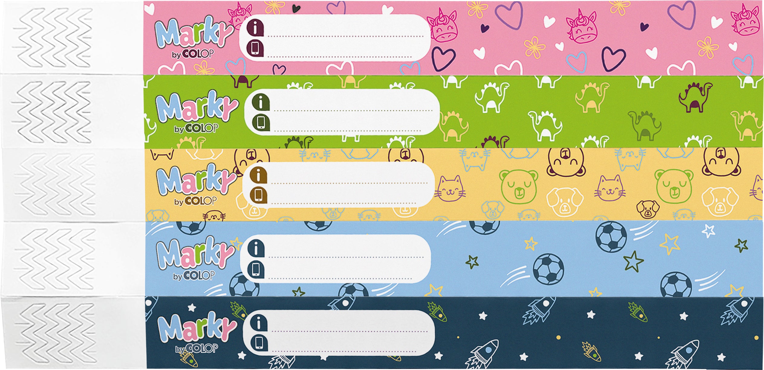 Each wristband includes space to clearly write your child’s name and your phone number using the waterproof Marky SOS Liner included in the kit. The bands are lightweight, comfortable, and perfectly sized (21 x 1.6cm) for little wrists, giving parents peace of mind during outings, events, or holidays.