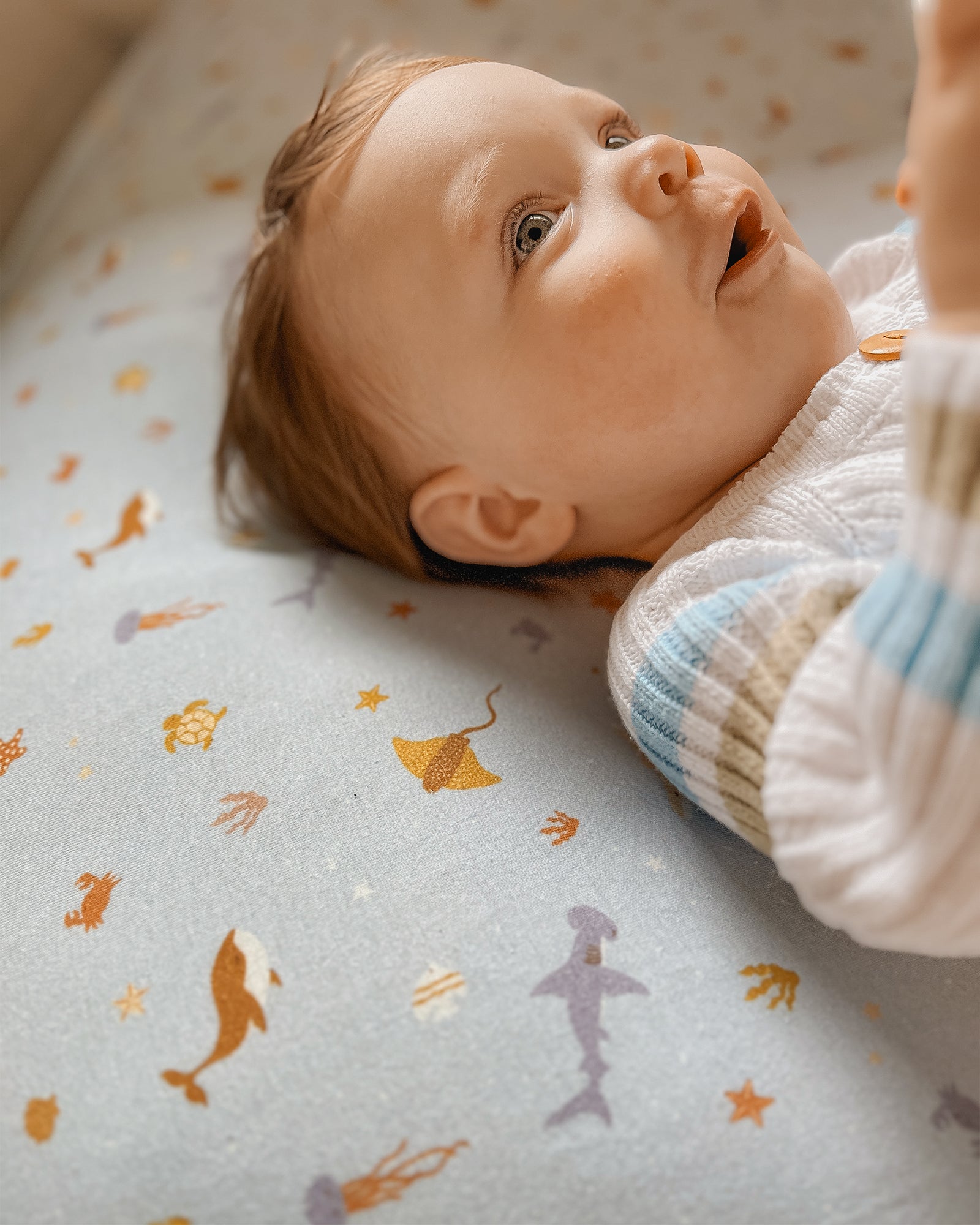 Fox + Fallow Organic Fitted Cot Sheet | Ocean Creatures Sky