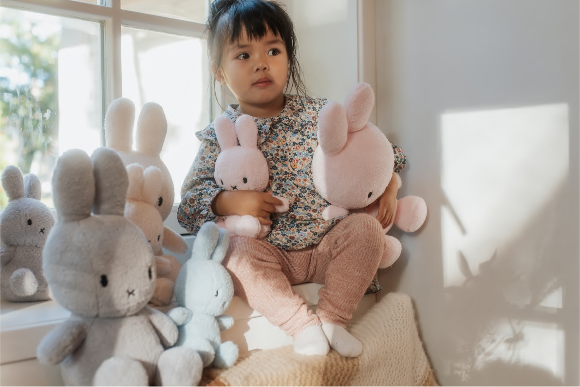 Miffy is Dick Bruna's best known and most popular character, featuring in more than 30 books, far more than any other character he created. Miffy appeals to children all over the world, instilling a sense of safety. Many children are able to identify with Miffy and her adventures. She is uncomplicated and innocent, has a positive attitude and is always open to new experiences.