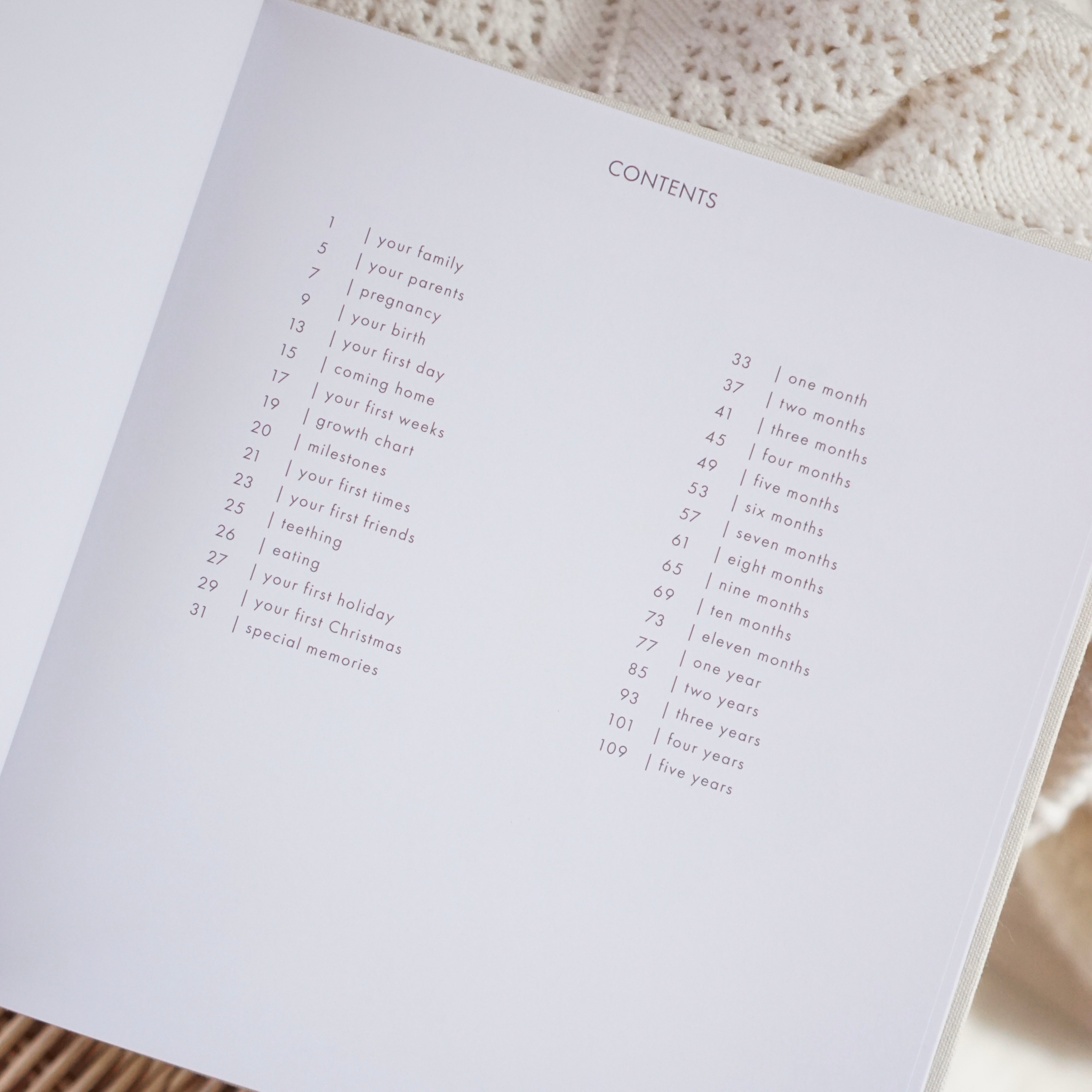 Both the Album and Keepsake Box are embossed with ‘little moments, big memories’, and each album has a unique inner cover design, subtly embossed with the quote in gold-foil,