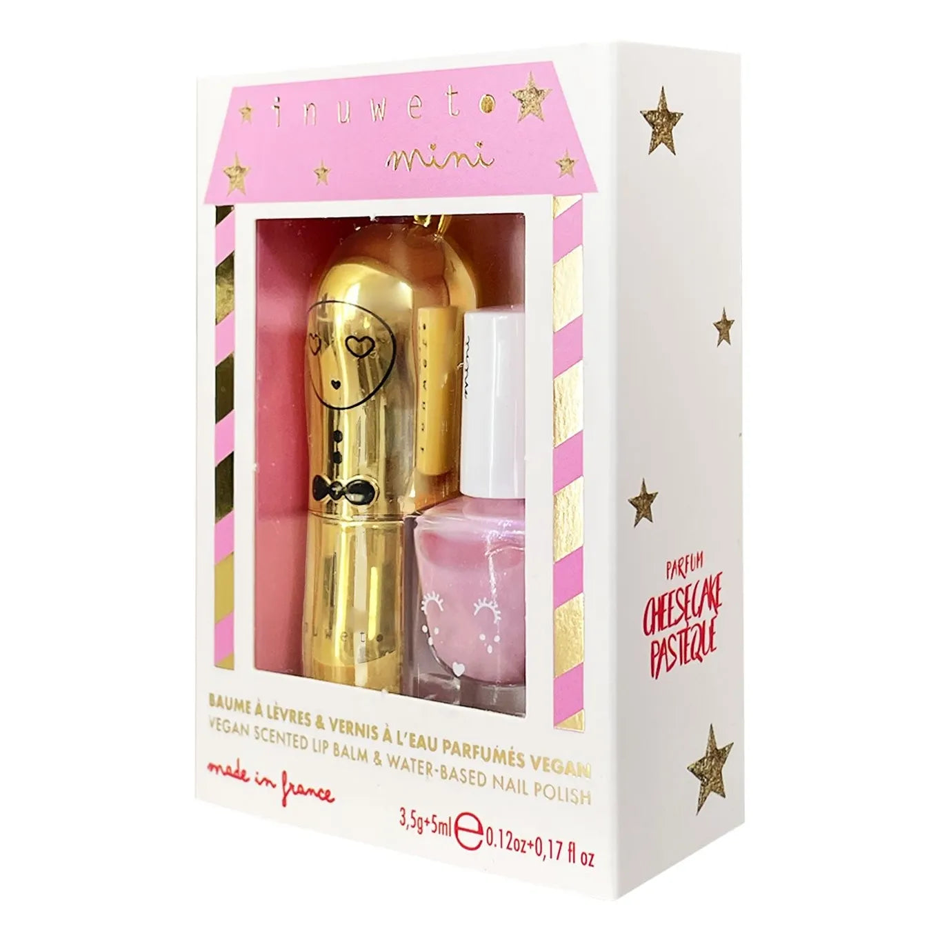 A colorless, nourishing cheesecake-scented lip balm in a gold super star pack. Enriched with ORGANIC shea butter, macadamia oil and carnauba wax for intense lip hydration all day long. Dermatologically tested.