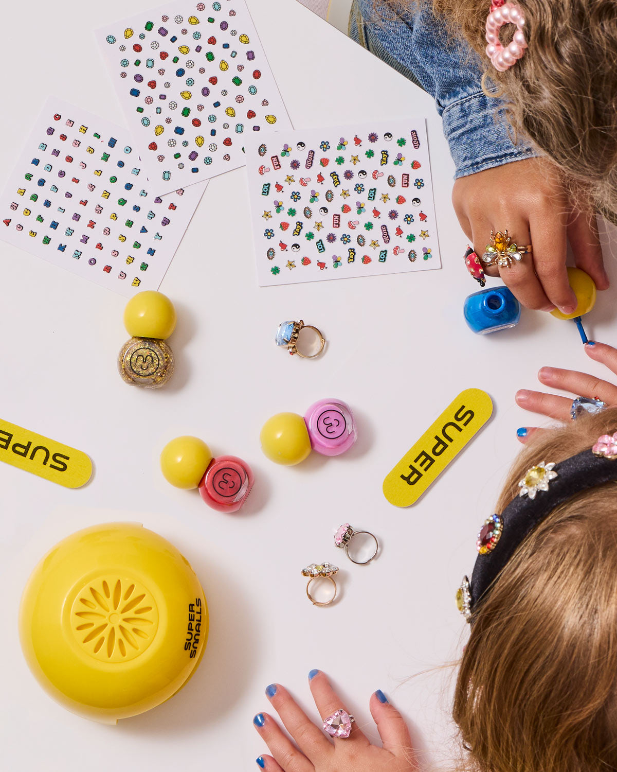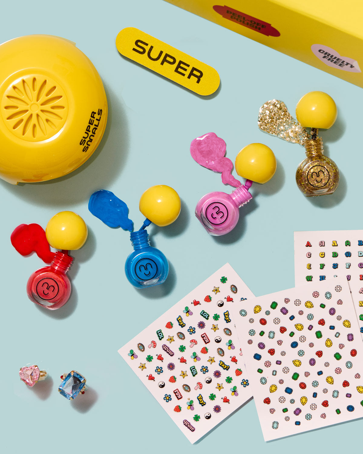 Prepare the cucumber slices and the soothing music—the new & improved Self Care Nail Kit is here to make your at-home spa day dreams come true! With a nail dryer that REALLY works, a Super nail file, 4 (peel off!) polish colors - including a new blue polish!, 3 sheets of nail art stickers, and 2 gem rings to show off your mani (you didn’t think we’d forget those!), this kit brings it all.