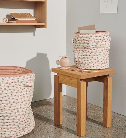The Liewood basket is cylindrical and spacious, and can contain e.g. clothes, soft toys and others things. The sides have practical handles at the top. The basket is soft and without braces.
