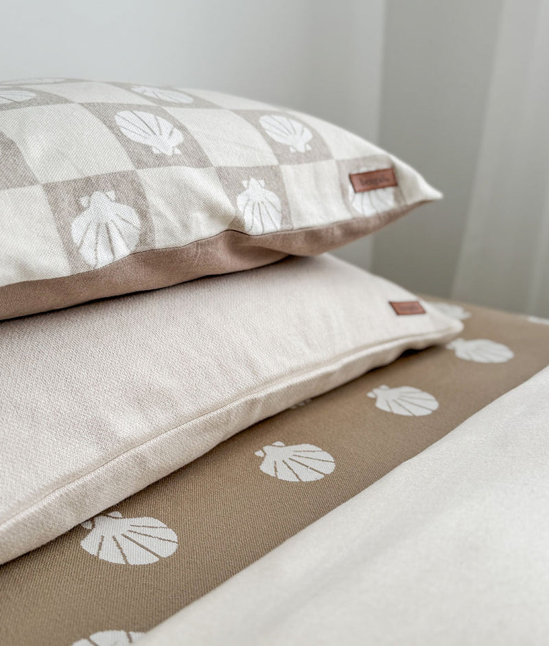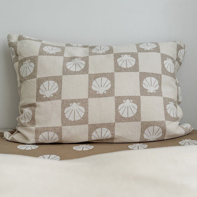 Dune & Natural Checker pillowcase with an ivory motif, and stone reverse. Woven from 100% pure cotton, it’s soft, breathable, and designed for everyday comfort across every season.