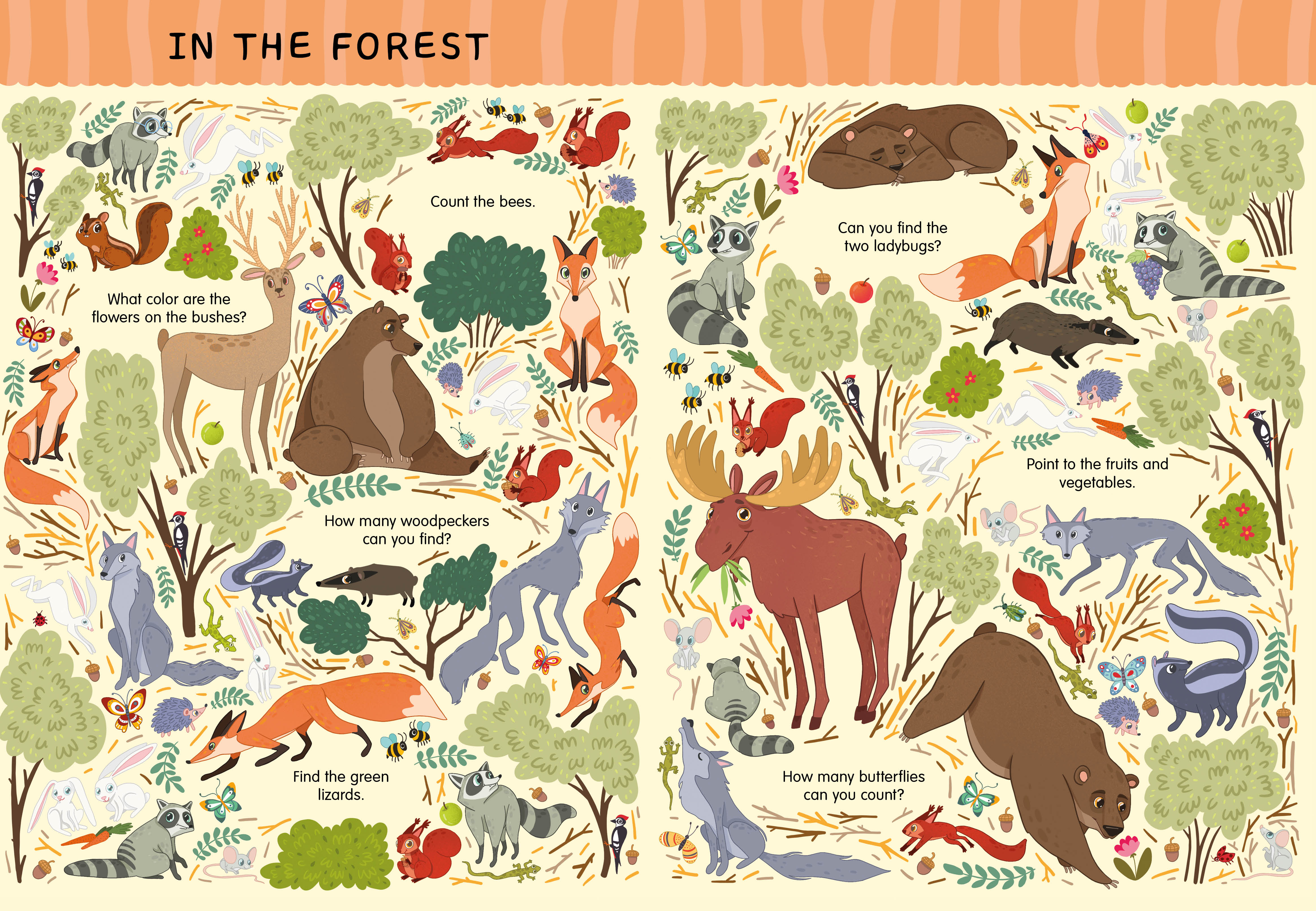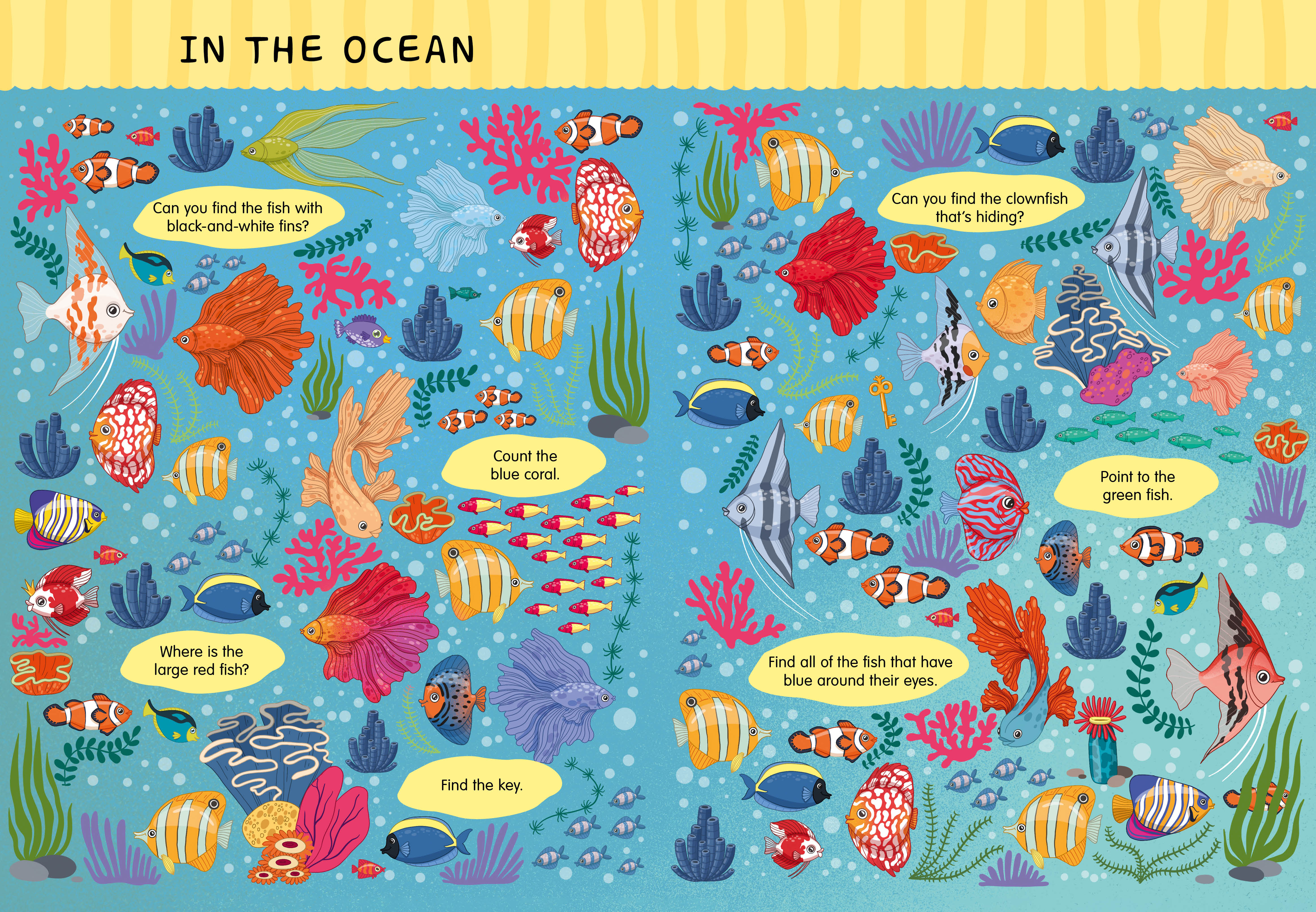 Children will love searching the bright, colorful pages of this immersive look-and-find book! Journey to outer space, dive to ocean depths, and meet new animal friends through engaging activities that stimulate curiosity and cognitive development. Packed with educational content, it's perfect for learning about different environments while having fun. With diverse themes like underwater worlds, nature landscapes, magical creatures, and space, this hardcover book appeals to all interests. It helps improve concentration and hand-eye coordination, making it a must-have for curious young minds. Perfect for interactive learning and endless entertainment!
