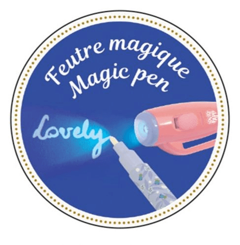 This wonderful magic pen from Djeco contains invisible ink which only appears in the beam of the UV torch hidden in the lid.