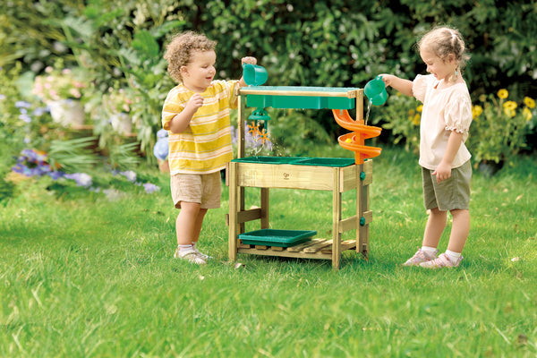 Spark your child`s imagination with exciting water play - through the winding channel, messy mud creations and fun windmill experiments! This clever table grows with them, turning playtime into endless discovery. Remember to empty the water after use!
