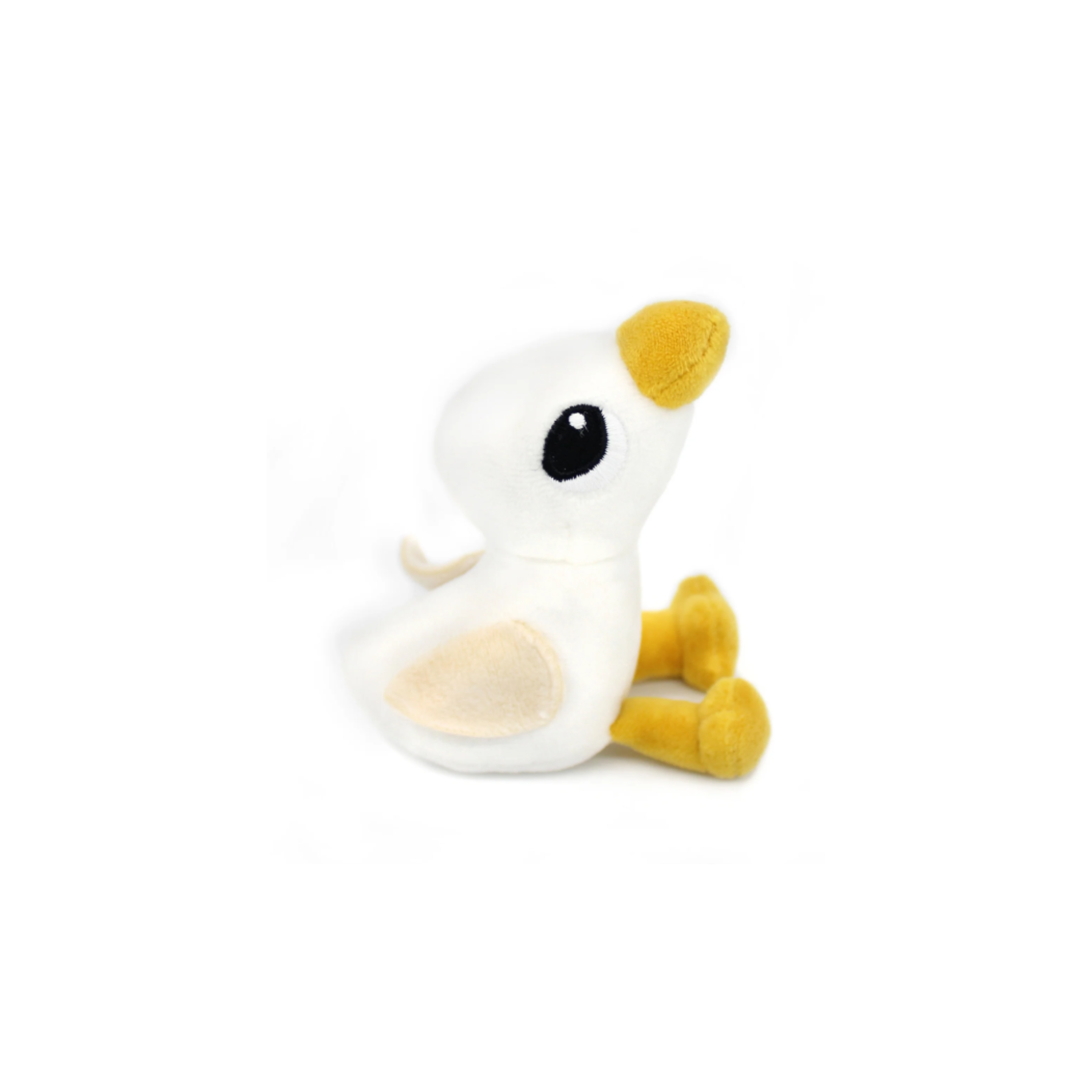 The white Ptipotos goose plush toy is sold with its baby hidden in its belly.
