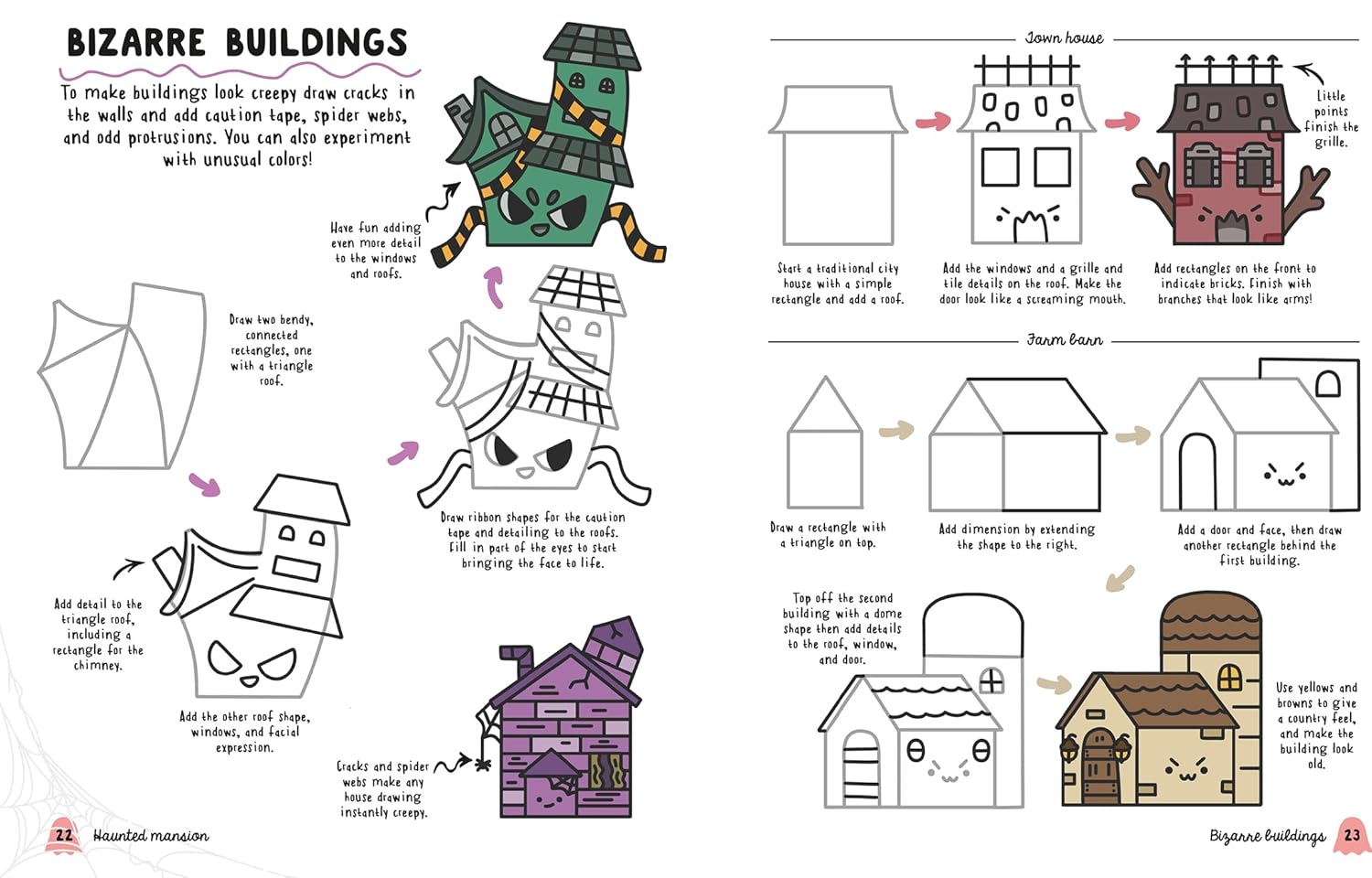 Kids can take a journey through each eerie environment, and end with tasty treats. The clear step-by-step diagrams are great for visual learners and make it super-easy to follow the instructions. Each spread - drawn in Angela’s trademark playful style - offers an easy guide to drawing goofy goblins and madcap monsters that will make Halloween a scream.