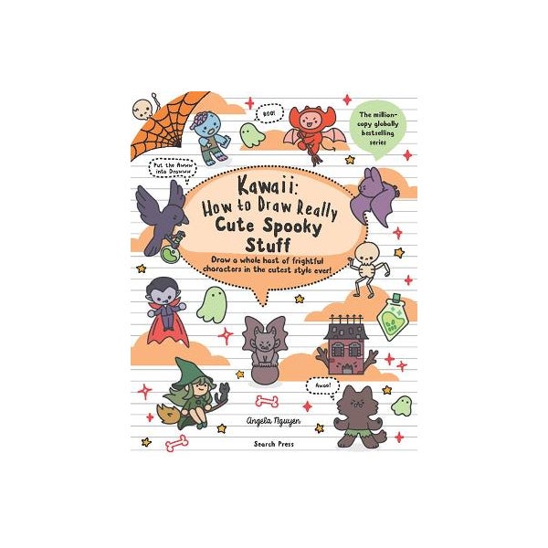 Draw a hauntingly cute collection of 60 ghosts and ghouls from best-selling author and ‘Queen of Cute’, Angela Nguyen. This kids’ how-to art book takes a light-hearted approach to all things spooky and scary, from vampires who like a cozy coffin and a nightcap to the sweetest of zombie bites topped with ‘frightful frosting’!