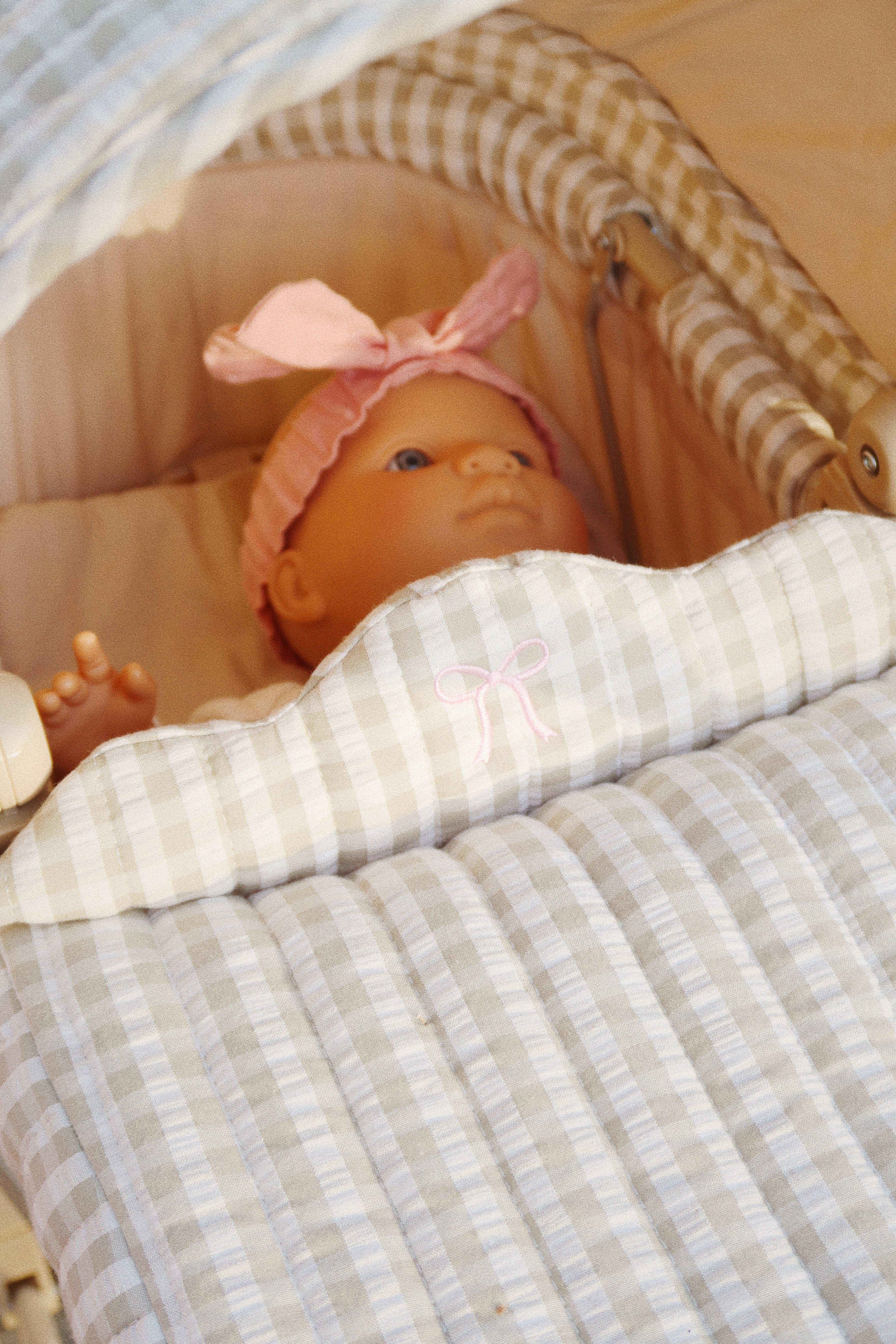Materials: Doll: vinyl. Body: cotton. Filling: polyester. Pacifier: PP.