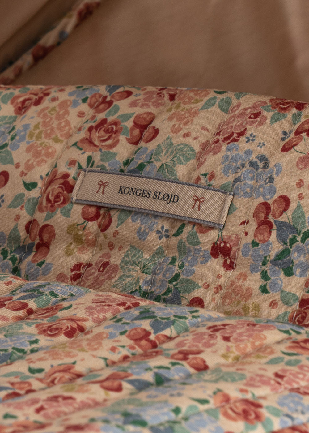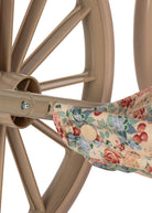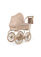 Our vintage style doll pram in a smaller version that is easy for little doll parents to maneuver. Designed with four large wheels that make it easy and stable to walk with, quilted fabric, and delicate scallop edges.