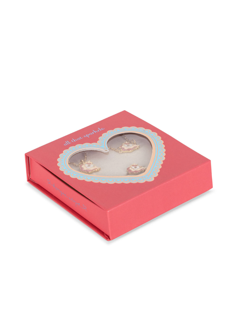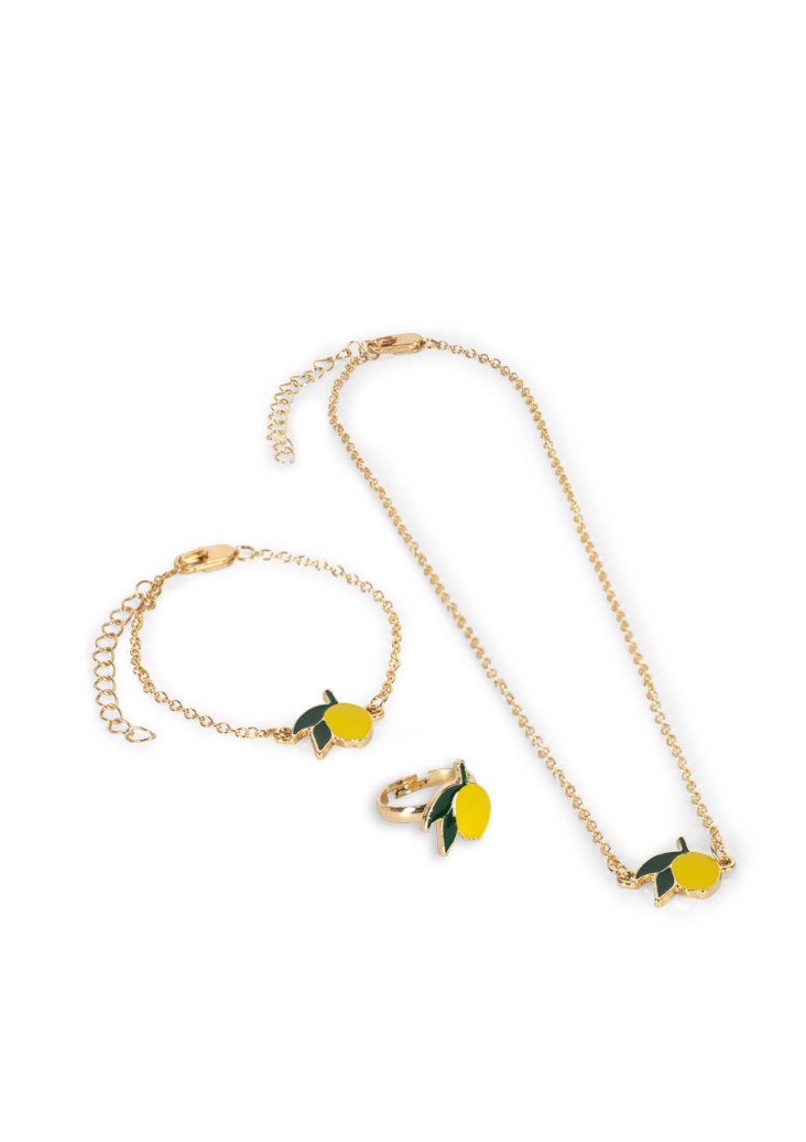 Gift box containing a necklace, a bracelet and an adjustable fingerring.
