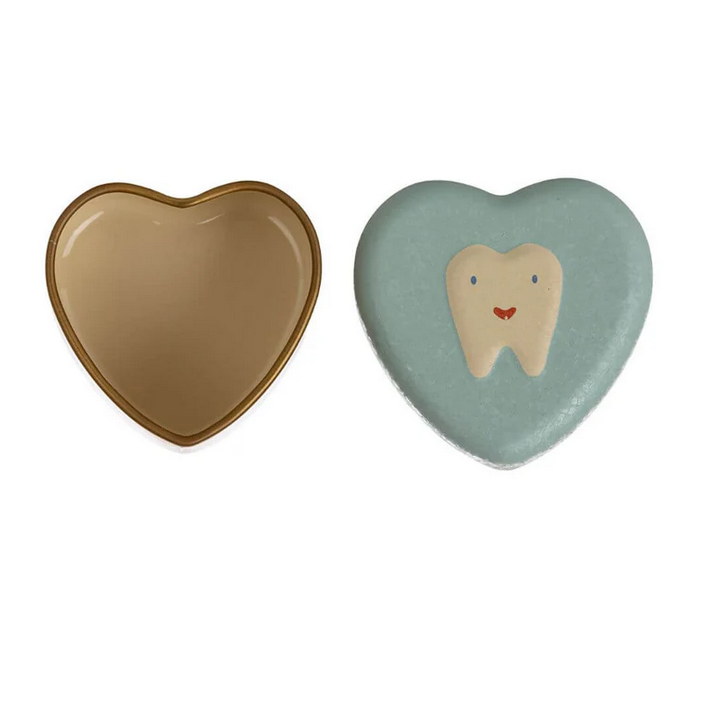 This metal heart is the perfect place to save small baby teeth to ensure childhood memories will last. The box has a lovely tooth embossment and special cracked surface on lid.