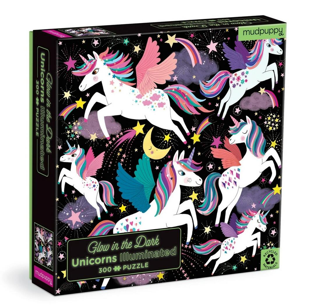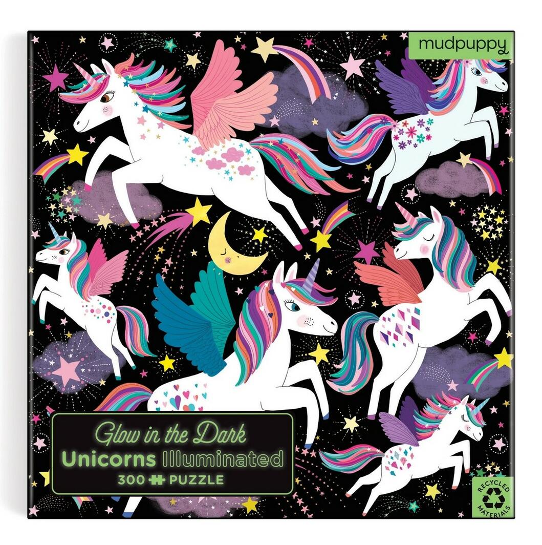 Mud Puppy 300 Piece Family Puzzle | Glow in the Dark Unicorns