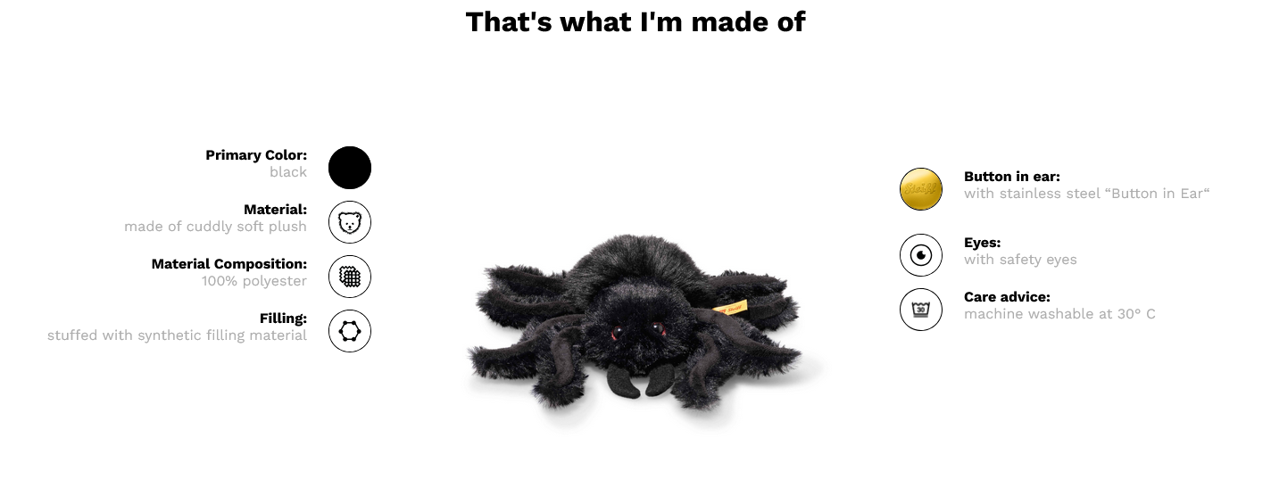 A spider as a cuddly toy? Absolutely! Cobweb ensures creepy-crawly playtime fun with a guaranteed shiver. Equipped with eight hairy legs and red glittering eyes, this fluffy black spider from the Friends range is the perfect companion for Halloween adventures. To ensure that the 14 cm plush friend can sit steadily, granulated materials are incorporated.