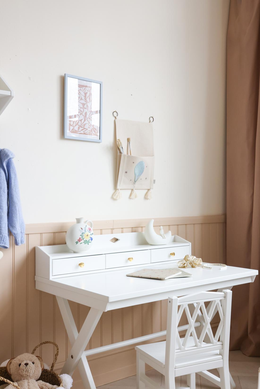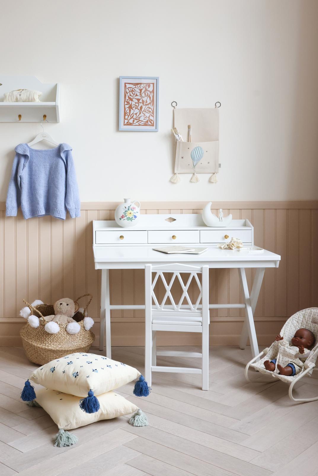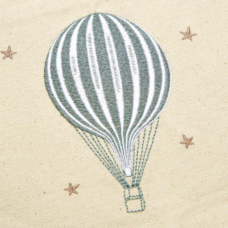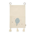 Add charm and functionality to the nursery or kid’s room with our decorative and practical Wall Pocket in the whimsical Dreamland theme. Made from GOTS-certified heavy canvas, this versatile accessory offers convenient storage and elegant decor. Featuring fine embroidery of a rising Hot Air Balloon, inspired by our popular Dreamland print, it includes two sweet pompoms at the bottom corners for a charming vintage touch. Easily hung with metal rings, this wall pocket is perfect for organizing small items, whether essentials for the changing table, utensils for the kid’s desk, or toys and other treasures, while bringing cosy character to your kid’s room.