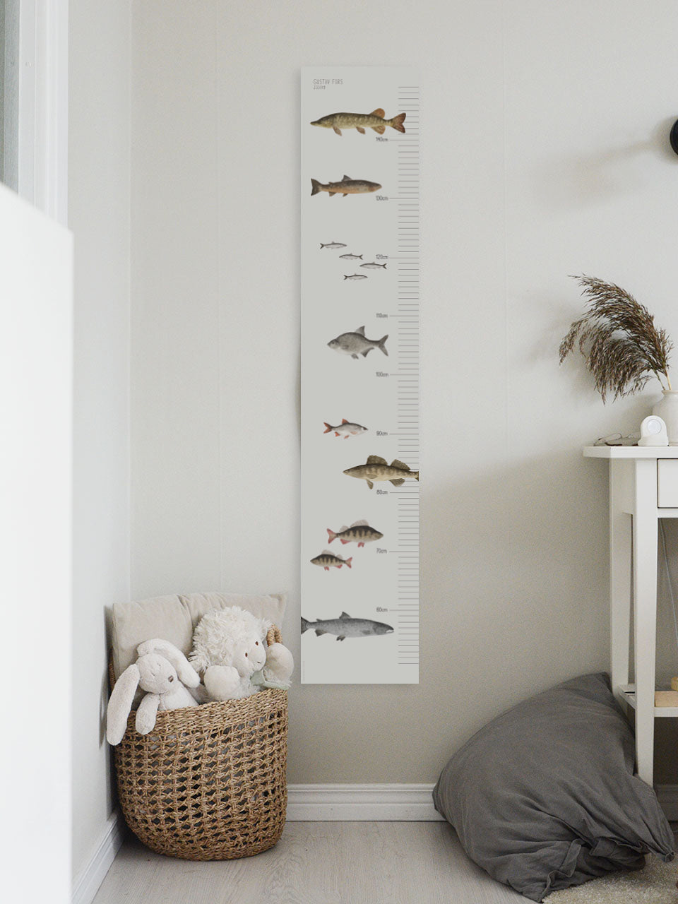 Decorate the children's room with a cute growth chart with an illustration of fish.