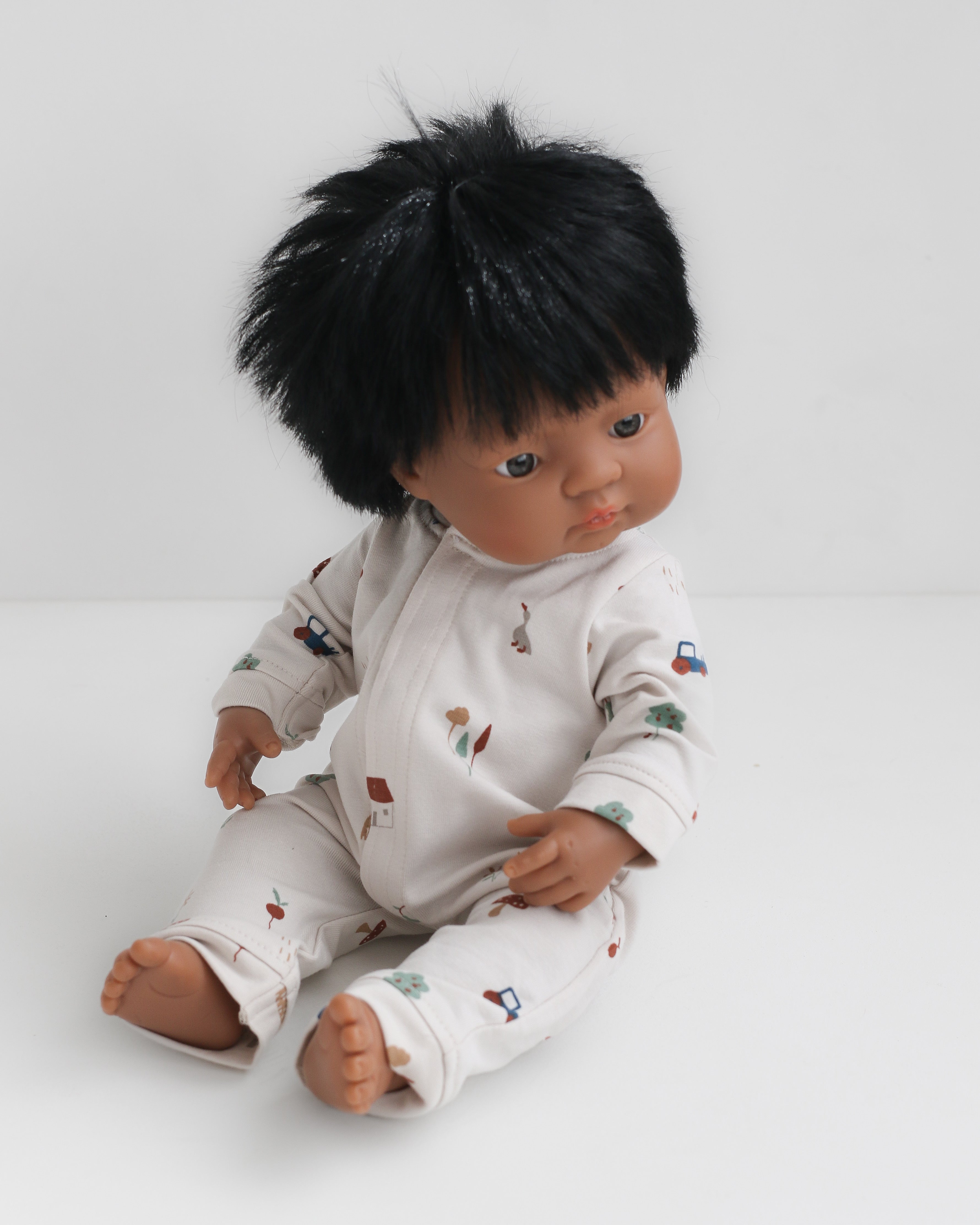 The look of delight a child has when they can match with their baby doll. Perfect for gifting alongside the childrens dress or as a gift for the sibling with a new baby dressed in the Simple Life zip suit or even on its own the Simple Life doll romper will give joy through the act of play.